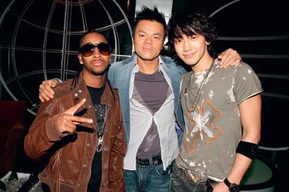 節奏藍調歌手歐瑪瑞恩、韓國音樂製作人朴軫永以及韓國歌手 Rain 於 2006 年合影。朴軫永曾為這兩位藝人製作歌曲。