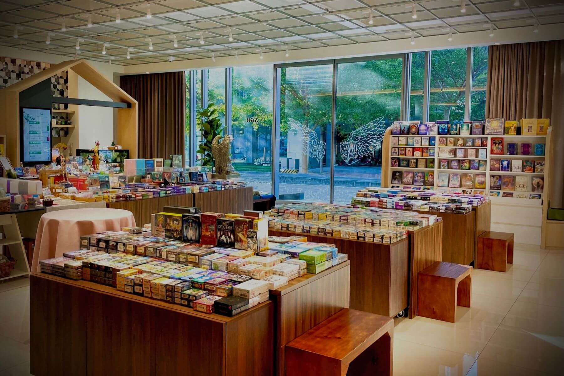 除了瑜珈、哲學、心理學、神祕學、未來學等身心靈相關的豐富書籍,這裡也有販售CD、文物以及相關療癒工具,尤其是各種神諭卡、塔羅牌等五花八門的牌卡,以及繽紛的彩油,是佛化人生的選物大宗。而這裡也不定期地舉辦與靈性、療癒相關的課程與活動,讓大家得以親身體驗,探尋自己內心的多種可能。