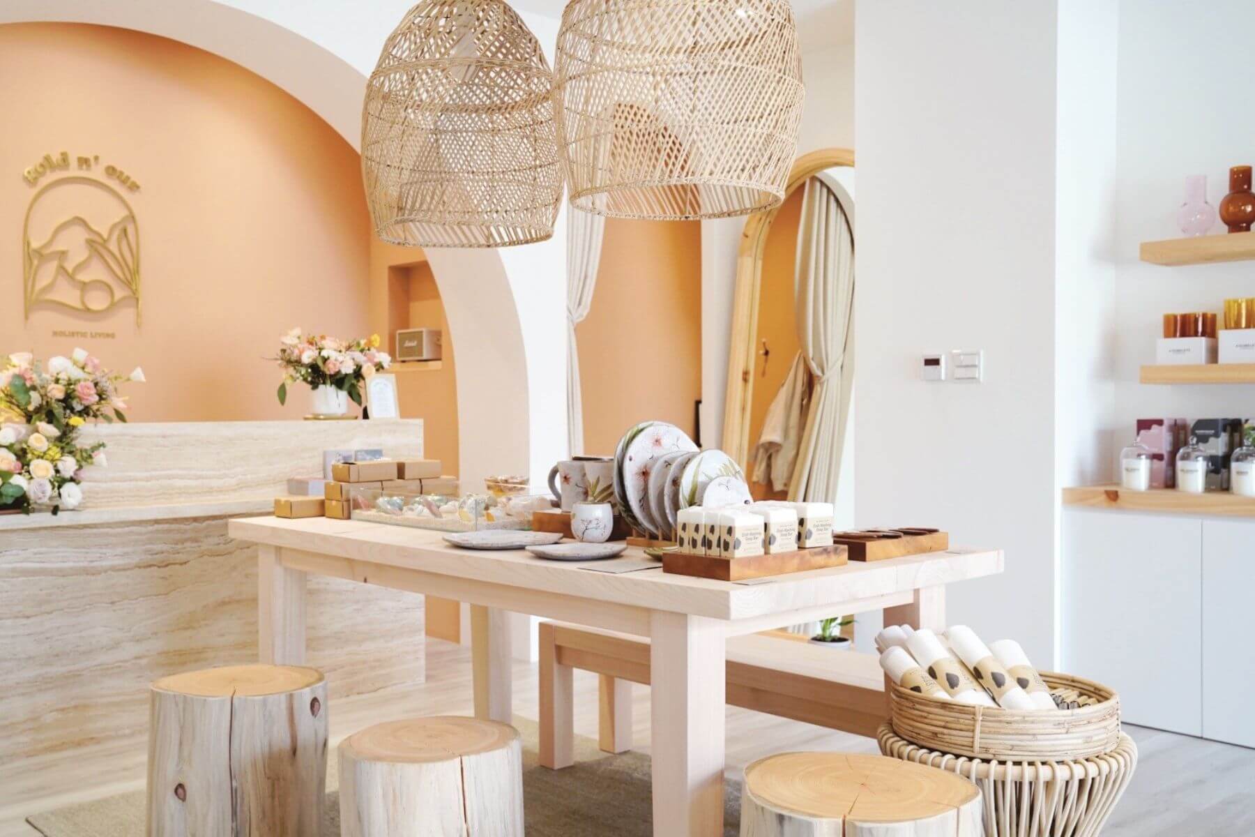 木質調的日系裝潢,溫和的色系給人一種安定心緒的力量。各式各樣的療癒小物分散在空間中,窗外陽光傾落,在選品上折射出閃亮的光芒。水晶礦石、香氛蠟燭、生活家居、飾品配件、心靈諮詢課程……在這個明淨的空間中,總有一隅是你的能量地帶。