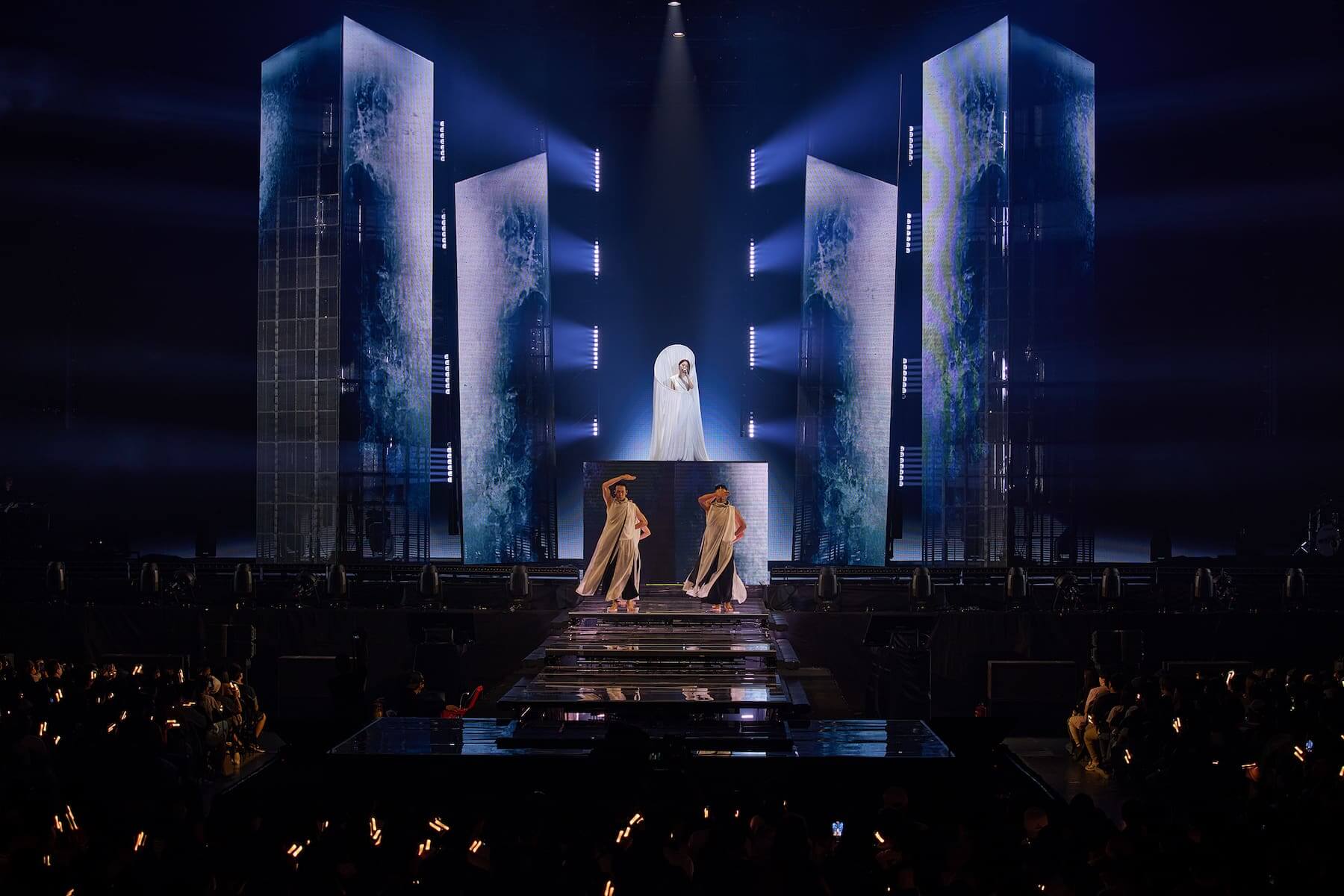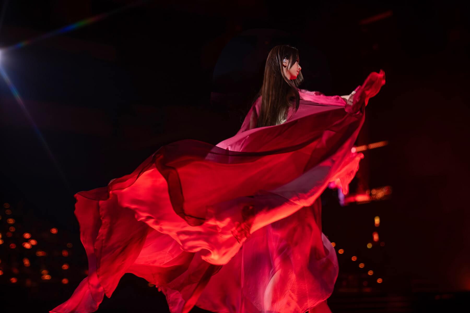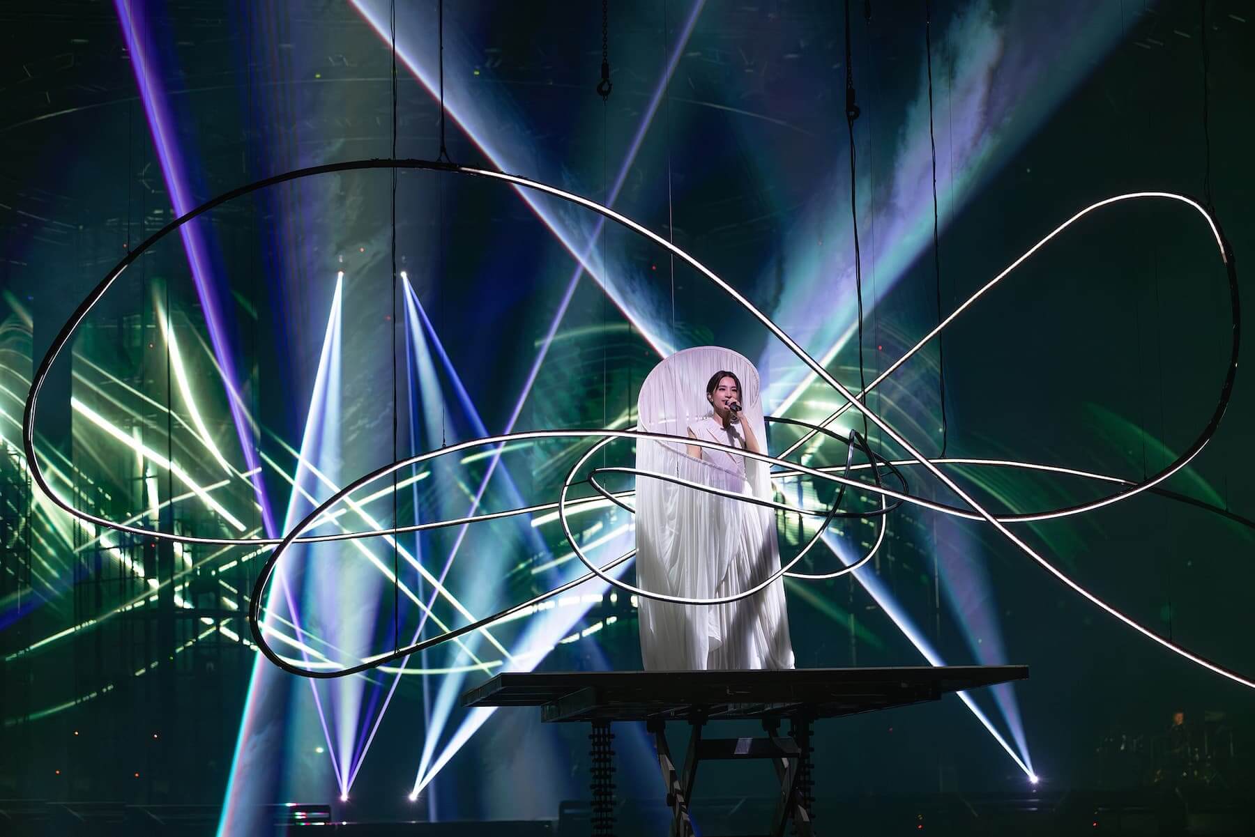 田馥甄在莫比烏斯光環道具包圍中演唱〈獨善其身〉。