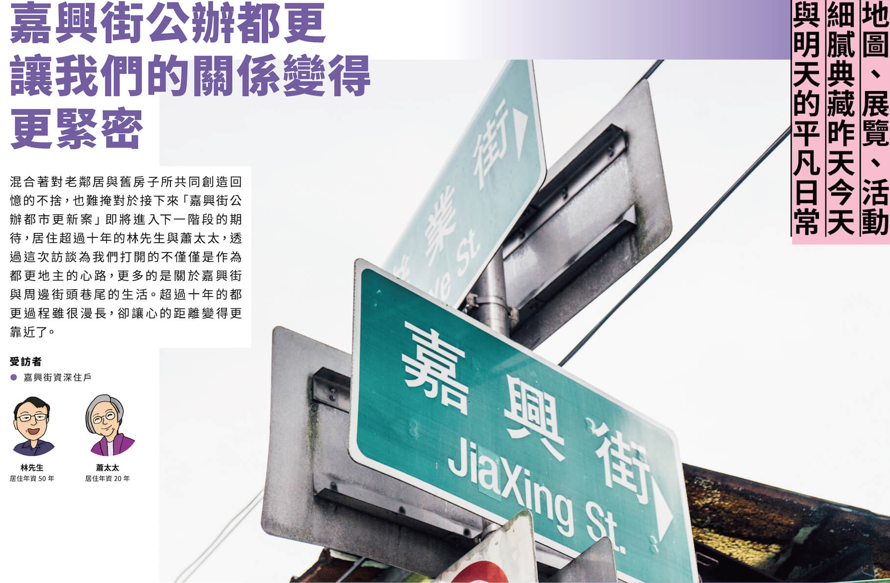 以往的「都市更新」多半著重於法律程序、條件交換,缺乏關懷長久居住所形成的人文連結。因此在《嘉興街公辦都市更新案》中,國家住宅及都市更新中心(國家住都中心)首度嘗試透過社會設計整合田調訪問以及都更歷程,在拆除前捕捉梳理社區的共享記憶,將之轉化為影音、插畫、展覽,與居民一同共創記憶,並集結成這本留給嘉興街穿越時空的「情書」。