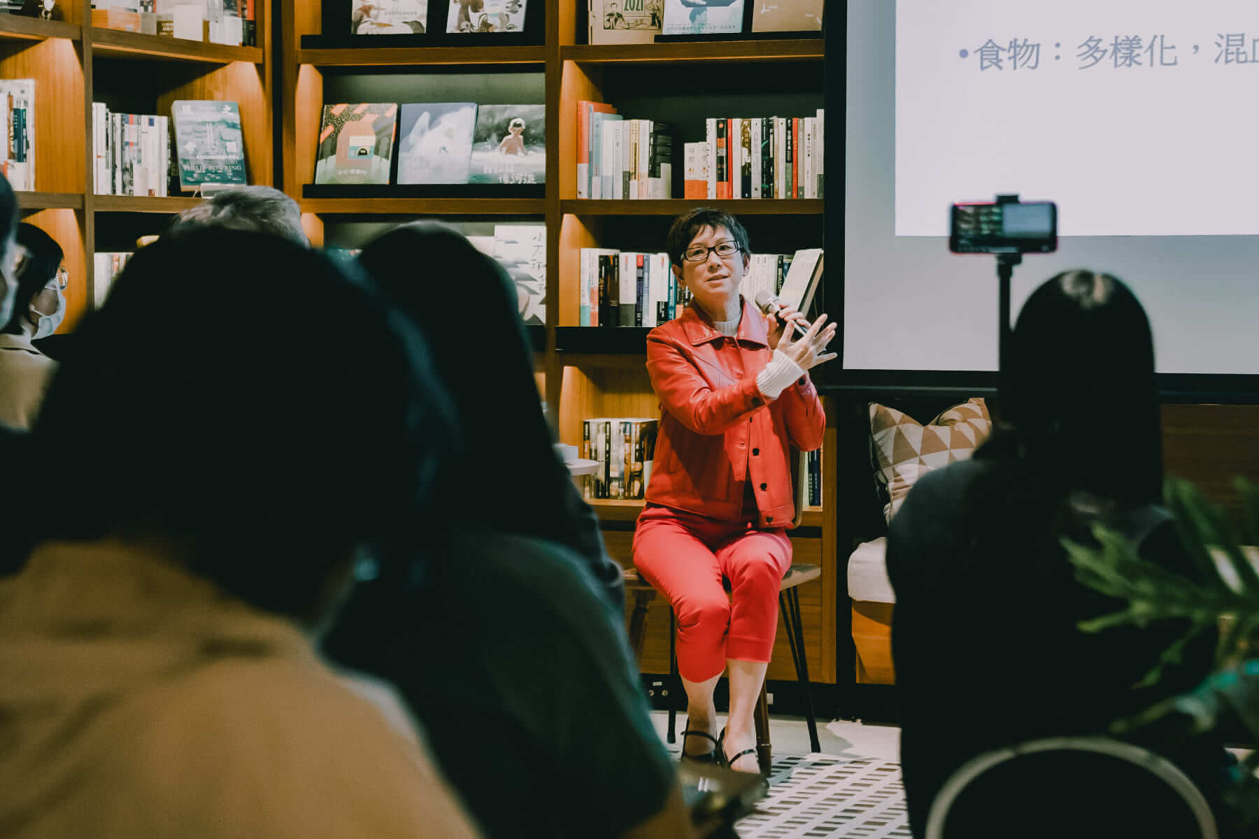 「如果還沒吃飯,肚子餓,就不要聽了。」接過麥克風,蔡珠兒先以粵語打了招呼,俏皮地如此說道。「我為什麼說空間史?是想用簡短的方式提綱切題,而副題『香港食肆的類型與滋味』才是我真正要講的題目。」講題中的空間史,並非以建築學的專業角度出發,而是以文化的角度切入,藉由作家獨有的細膩眼光,以飲食帶領我們看見香港文化的細節。