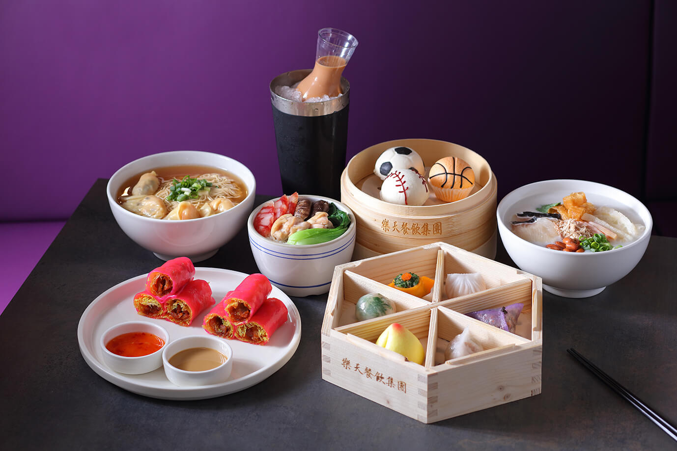 招牌「一籠大滿足」集結六款精選蒸點,從微辣的潮州粉粿到精緻的韭菜鳳眼餃,讓人一次品嚐港式點心的精華。特別值得一提的是因應大巨蛋特製的「球來必中」流沙包,以籃球、足球、棒球為意象,將芋泥、黑巧克力、經典鹹蛋黃流沙藏於其中,創意與美味兼具。