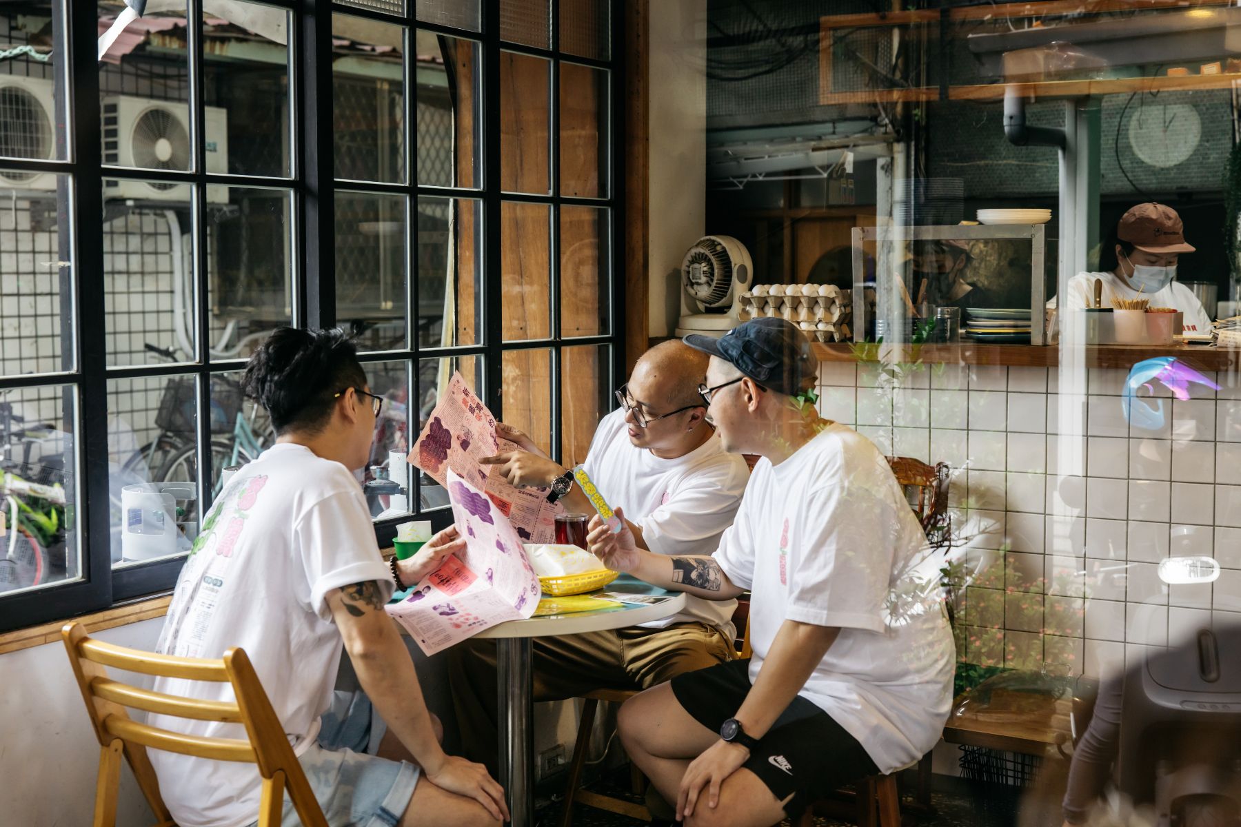 壞貓2號、不來梅創意與貓取廣告團隊成員於板橋好初早餐前齊聚一堂,他們一同完成《好初漫報》的募資、製作與發行,未來也會推出更多更B級的活動。