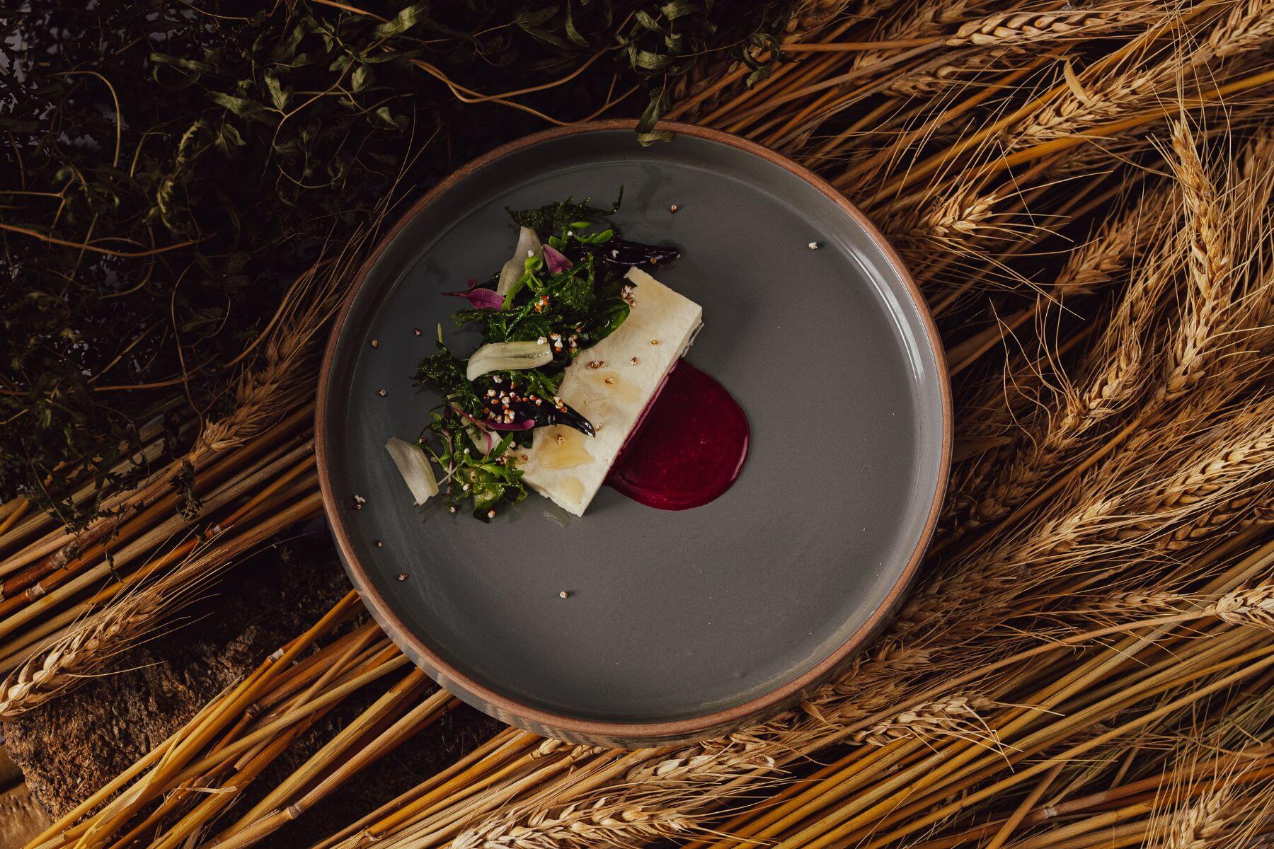 從台灣平原土壤種類出發,擷取了砂質土的鰻魚、黏質土的蓮藕,將台灣土壤養育出的食材,以細膩樣貌呈現風味。搭配蕎麥製作成的脆餅,來乘載青蘋果與紅肉李的酸、燒烤鰻魚的香,是兼具口感與芬芳的開胃小點。