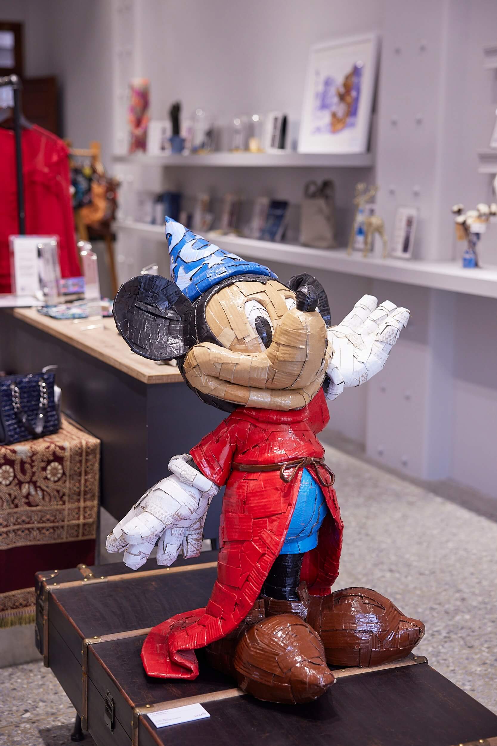 販售商品除了符合ESG基本標準外,永續百貨的亮點還包含來自加拿大魁北克的紙板藝術家 Laurence Vallières 駐點展出,並販售她極具創意與環保意識的藝術作品,為場內注入獨特的藝術氛圍。Laurence Vallières,畢業於康考迪雅大學視覺藝術系,曾赴洛杉磯進修陶藝,最初專精於陶瓷雕塑。2012 年,她在蒙特婁籌辦展覽時,為實現更大規模的創作,轉而以硬紙板為媒材,結合環保理念,成為其標誌性元素。她的作品聚焦政治、社會與環境議題,以獨特形式重新定義廢棄物的價值,並於世界各地展出,備受關注。