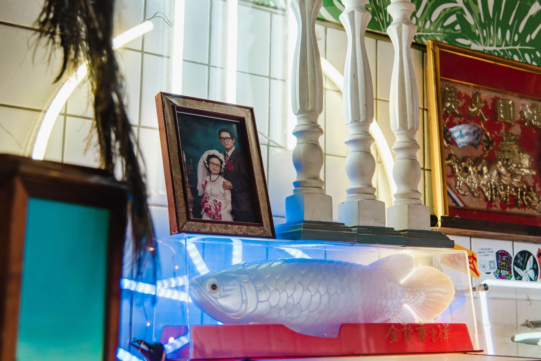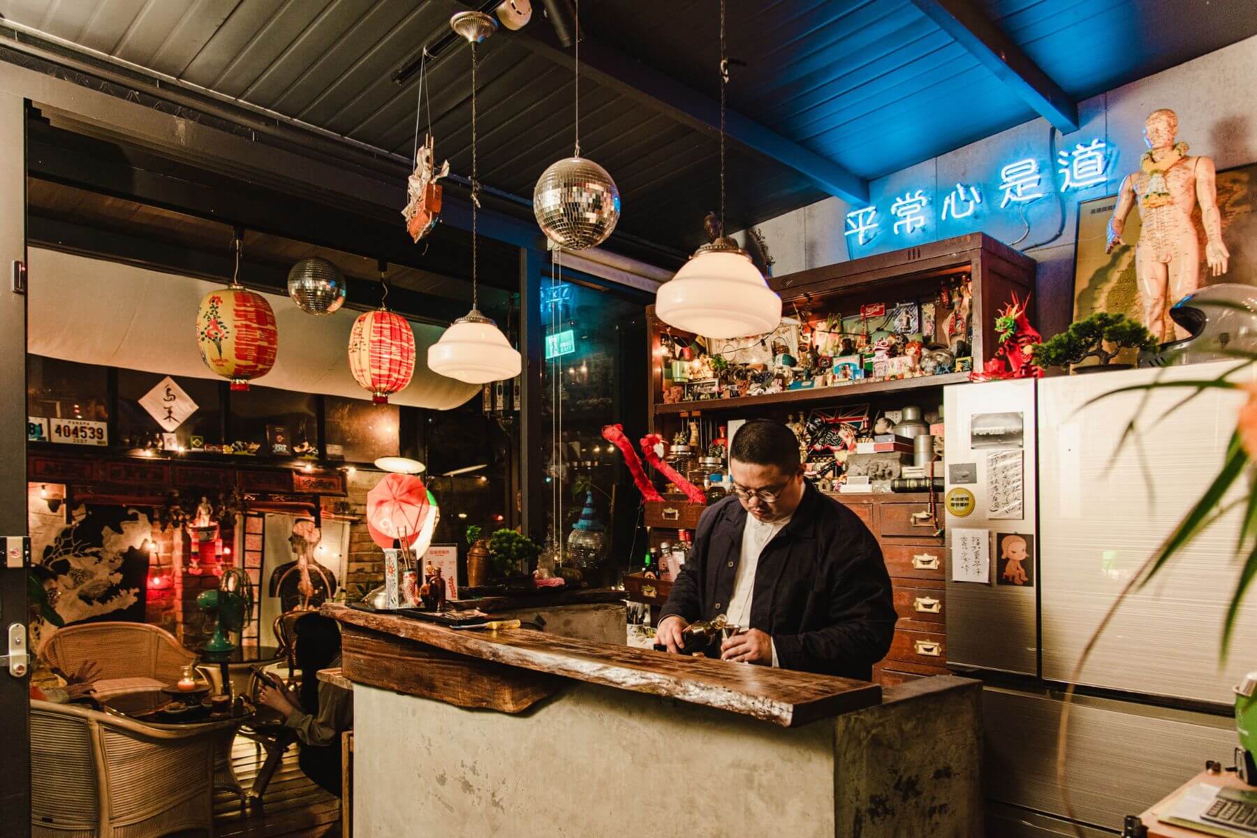 初入「島東譯電所」(以下簡稱「島東」),猶如掉入時空罅隙——在天花板上爬行的鱷魚標本、人體解剖模型、復古電視機、中藥櫃、神像、霓虹燈管、原民藝術品、中南美洲文物、米奇公仔、父母結婚照、顯示著不同時區的時鐘……時間在這方空間擱淺、錯亂,來自四面八方的文化看似衝突,卻能和諧共存。歡迎走進魔幻寫實的夜晚。