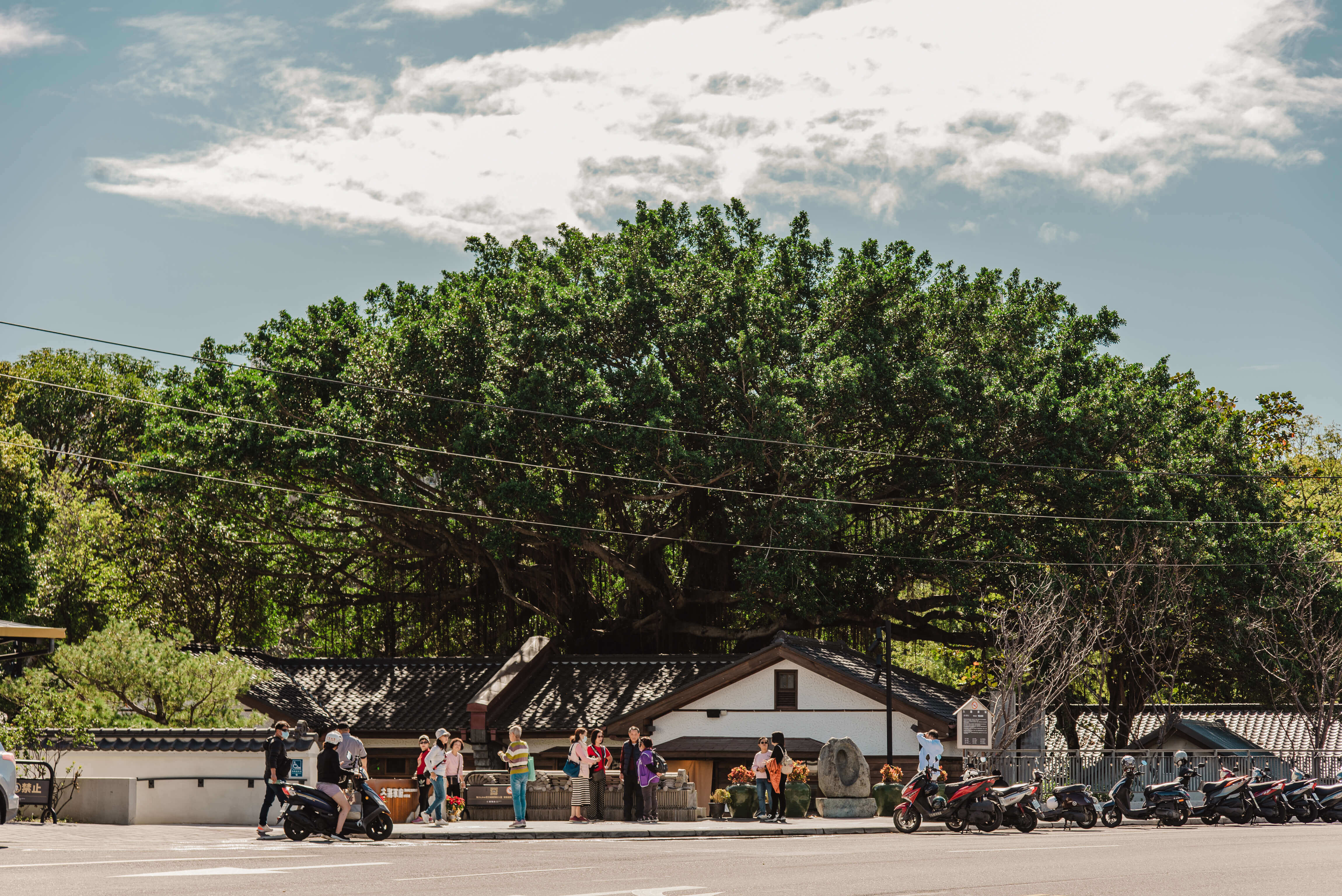續行至明禮路,映入眼簾的是數十棵瓊崖海棠形成的綠色拱廊,這是全台獨有的行道樹風景。兩人才能環抱的大樹向天空延展強而有力的臂膀,樹齡超過百年,每棵樹身都掛著編號識別牌,說明他們都是受到保護的文化資產。