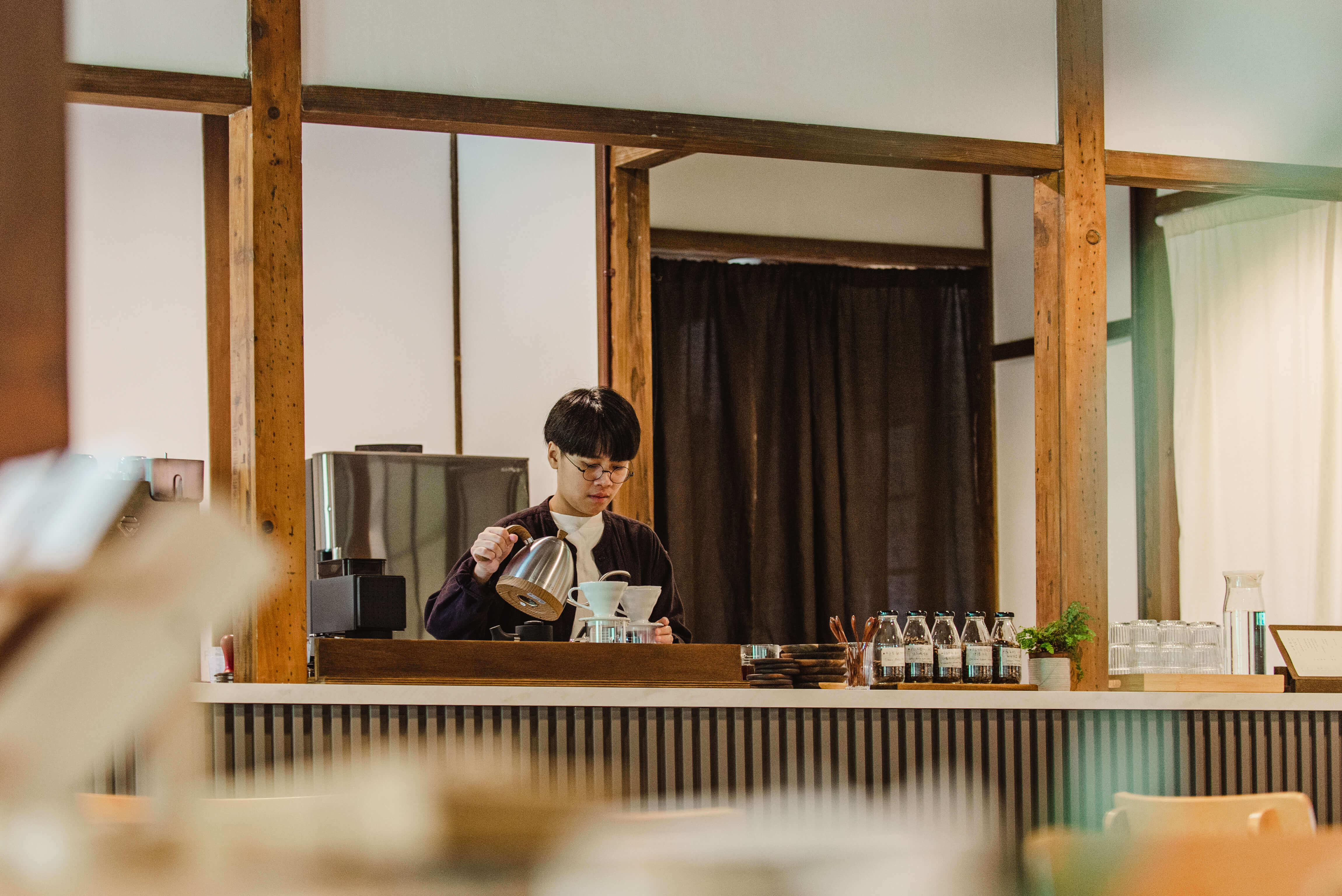 那個年代的氛圍以某種形式活在當代空間裡,向新世代傳遞聲音放送的溫度。步行到此,能在一旁的咖啡吧台為自己選一支手沖單品,等待之餘欣賞店家選物,從陶器、手作蠟燭、織物到漂流木創作,都能感受到花蓮在地風土所孕育的美學與生活感。