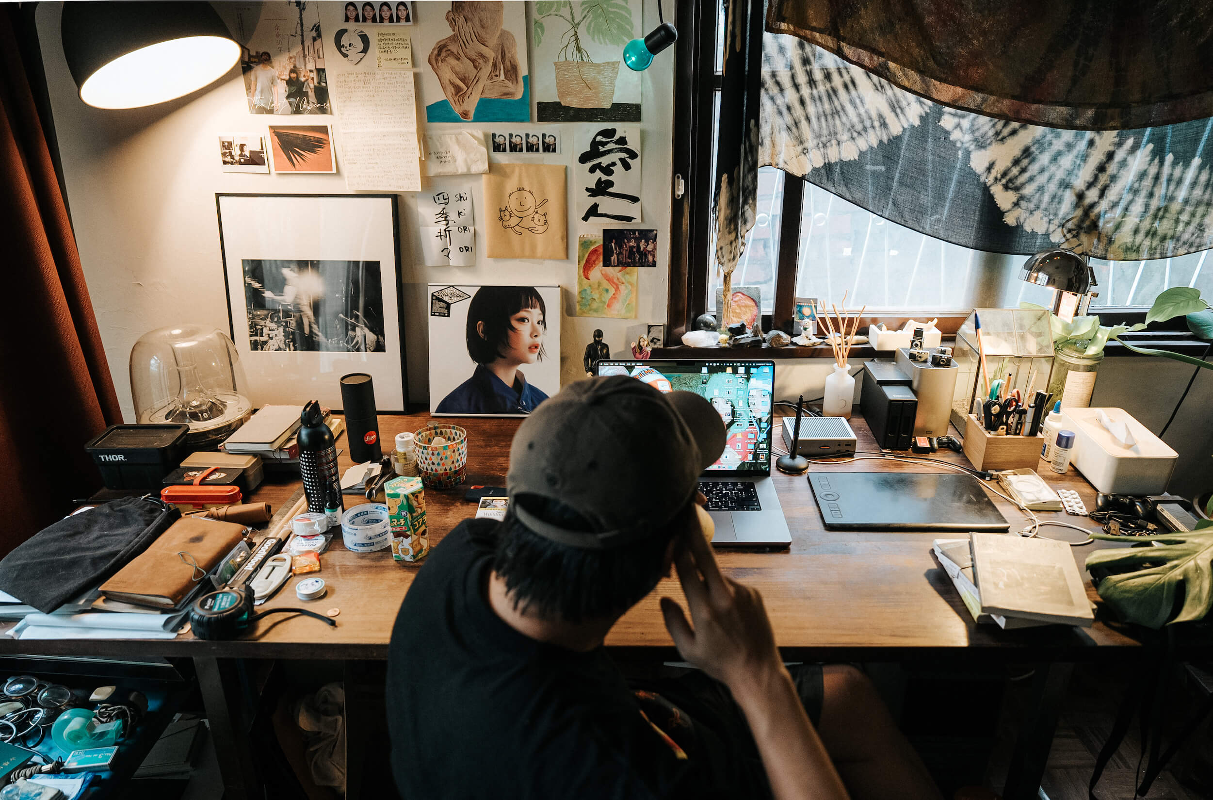 但時間改變了一切。從林森北路到龍江路,再到現在的天母,每一次搬遷都象徵著創作狀態的轉換。天母的安靜與林森北路的喧鬧形成強烈對比——過去他可以騎著腳踏車從愛情串燒晃到東區再到操場,沿途都有值得記錄的畫面;如今的天母卻少了那些讓他想按快門的瞬間。