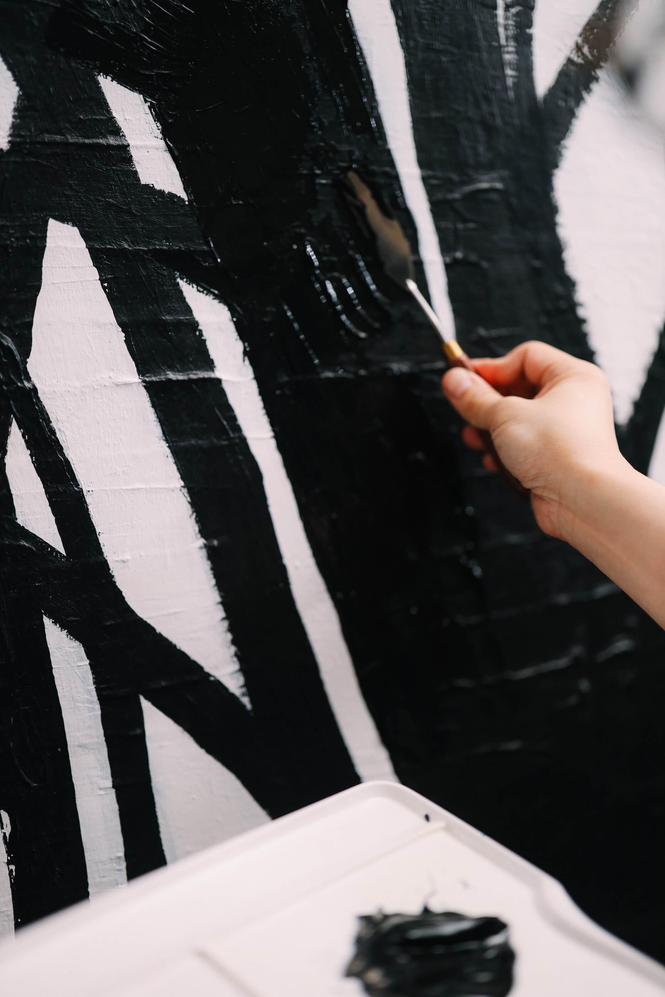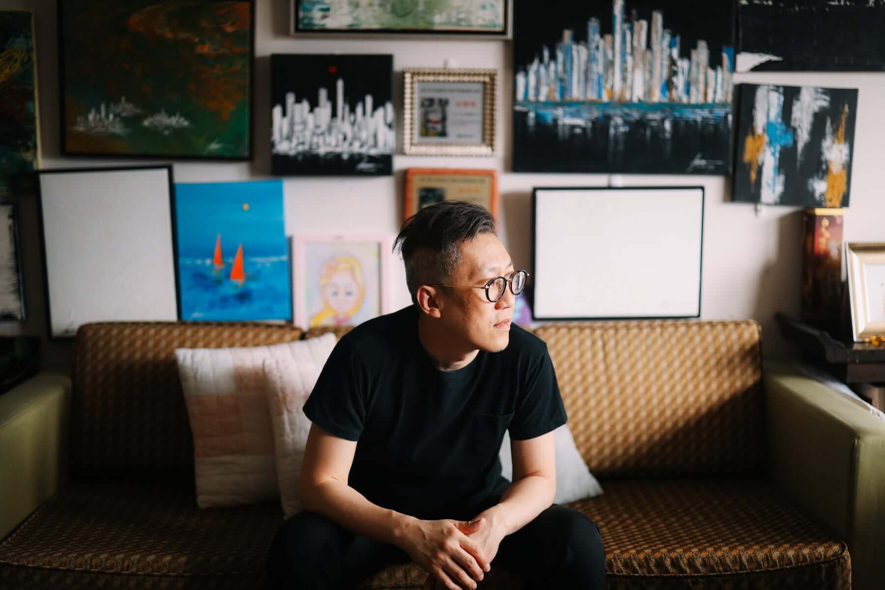 褪下白色廚師袍的陳萬欽,在家會穿著簡單黑色素T,拿起刮刀,繼續他腦海裡的藝術靈感。
