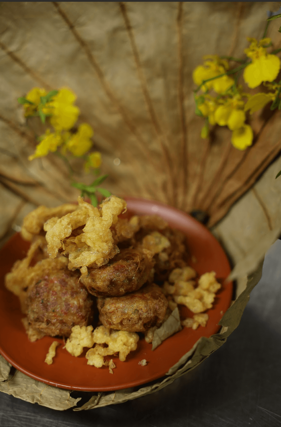 今日陳萬欽帶我們探入台北君悅的神秘廚房,宛如五星料理舞台劇的後台,沒有大聲喧譁,只有刀鏟火爐的聲響節奏,他用橄欖油、油醋、蛋黃等食材乳化製成白色醬汁,點綴在餐盤上,再以刮刀當成畫刀,沾取竹炭調色的黑色醬汁,揮灑出一幅美味的蟹肉餅沙拉花園。在他的學徒生涯中,蟹肉餅是最鮮明的早期記憶,「當年我還是助廚,做早班一班要做150個蟹肉餅。」超過一千次的練習,練就大師級美味,秘訣是簡單的新鮮食材,不簡單的嚴選青蟹、蟹黃、麵包粉與蔬菜泥比例,讓洋蔥、甜椒與香菇與蟹肉甜味完美交融,一口咬下有鬆、軟、脆、酥多重享受。另一道料理帶有更多新加坡的思鄉情懷,馬來西亞與新加坡的馬來人常吃的馬來馬鈴薯餅Begedil,是當地「湯」的滋味靈魂,將把平凡的馬鈴薯湯變成宴客小料理,陳萬欽製作迷人辛香的馬鈴薯餅帶有開胃解鬱的薑黃氣息,外酥裡嫩,擺盤以荷葉與文心蘭做成立體的藝術。