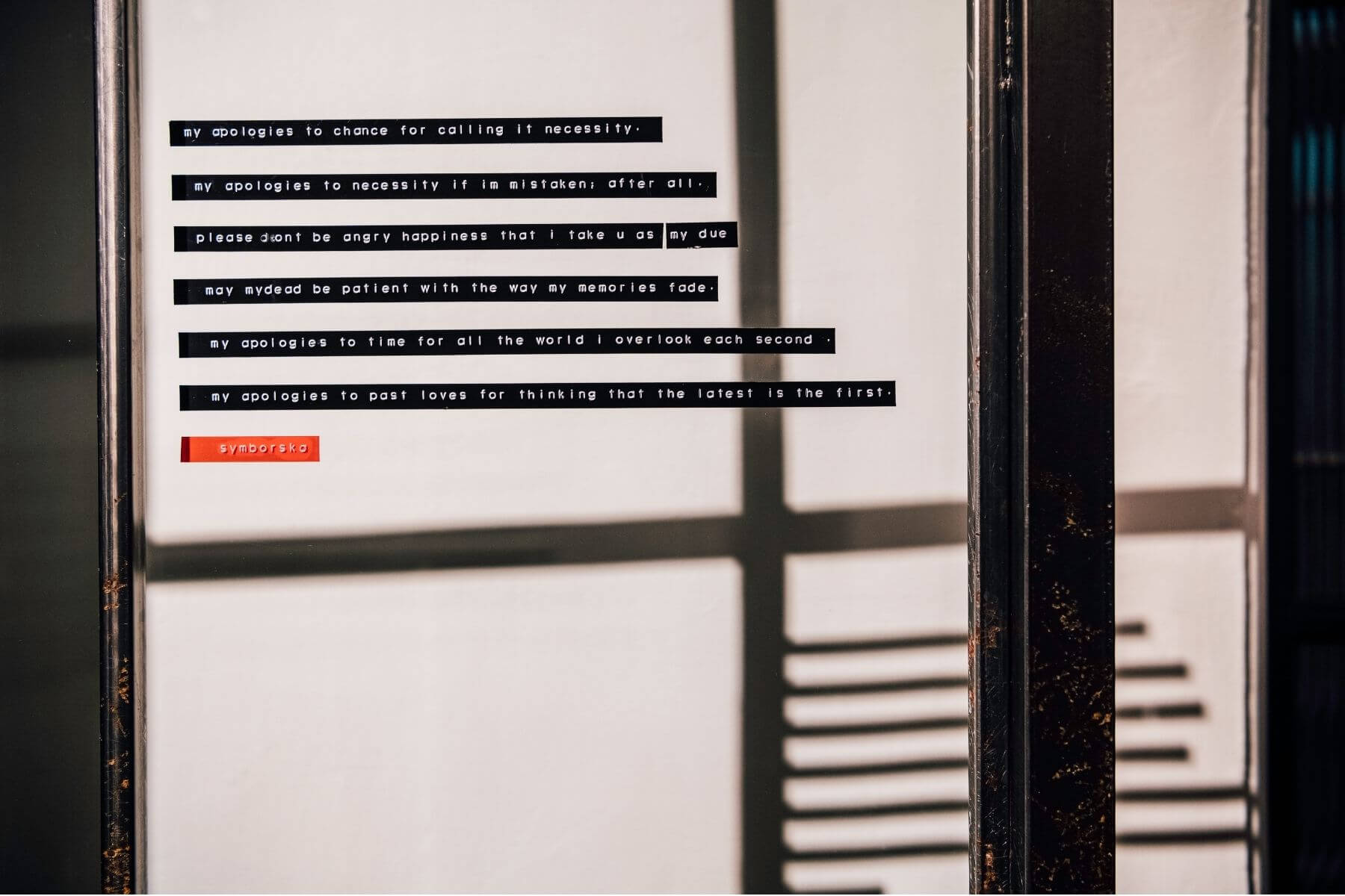 他喜愛借用詩來寓意空間,因為他認為「詩源自眾人美好的想像」,別人不見能夠理解自己所設定的意義,但有中心想法的空間自然會耐看、有深度。為此他很「抱歉」地把自己明知故犯的「錯誤」貼在辦公室的門上,那是辛波絲卡(Wisława Szymborska)的詩句: