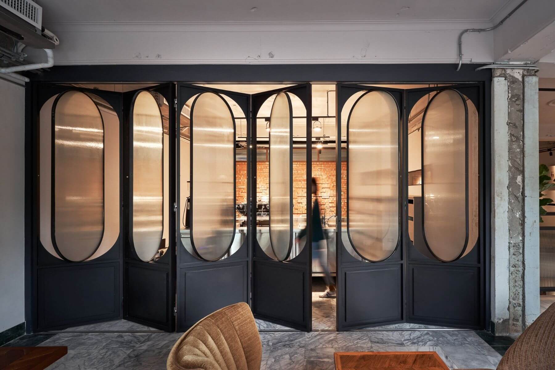 吳透還設計了一道結合三輪車圖像的鐵花門,刻意使用微微扎手的黃銅齒輪替代門把,借用聖經裡「荊棘」的意義,表達「保持初心就可以推開荊棘的門」的想法,呼應創辦人吳則霖從咖啡車創業走到世界冠軍的奮鬥故事。而吳透把冠軍獎盃以及創辦人的著作擺在不起眼處,隱喻「一條人少的路上」以及「淬鍊之後的承擔」,相當耐人尋味。(圖/II Design 硬是設計)