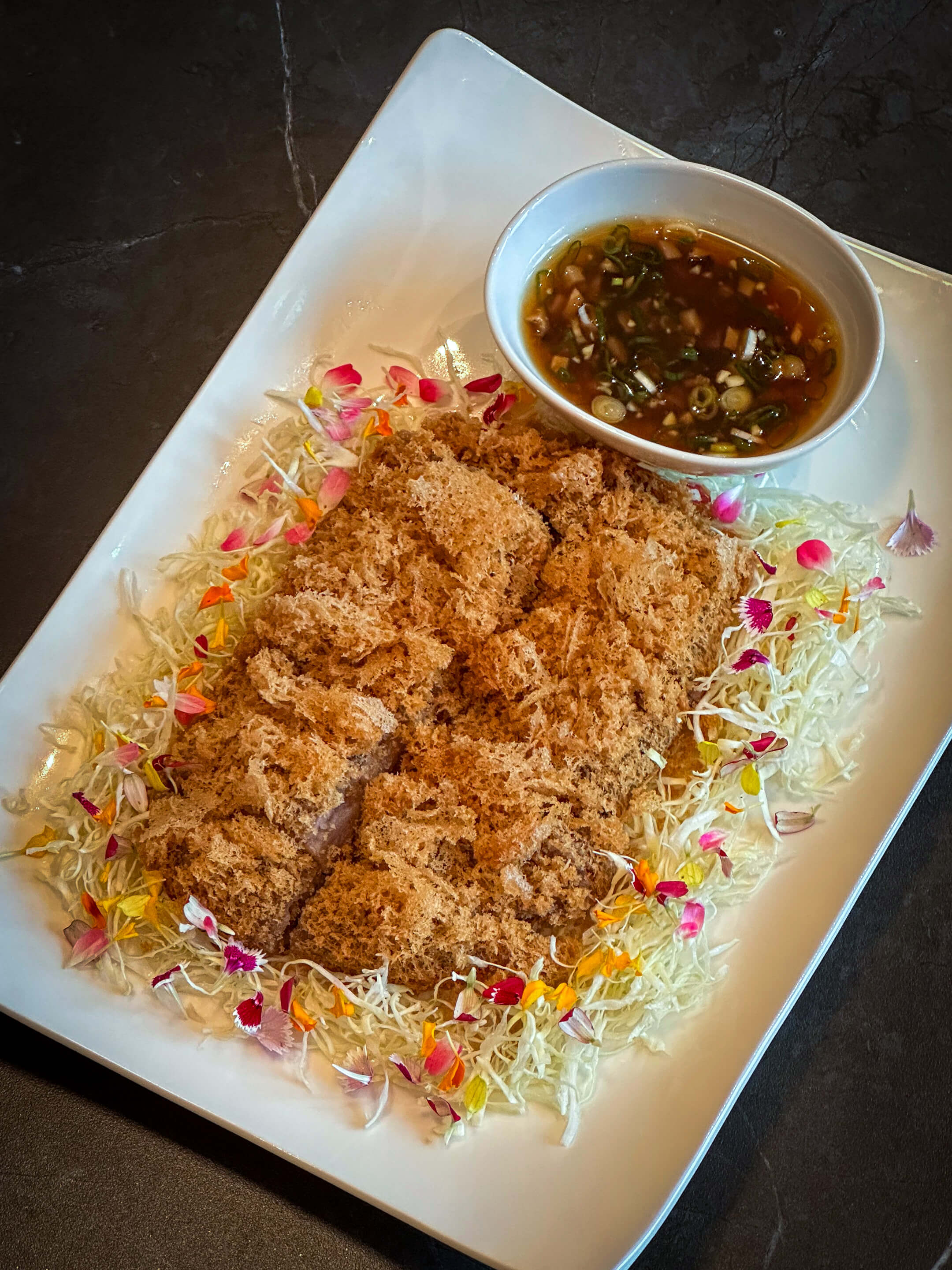 「金山芋蓉香酥鴨」是必嚐的招牌。金山的芋頭向來以綿密著稱,傳統俗諺說「九月九,風吹滿天哮;芋仔掘,稻仔割」,指的正是秋收時節芋頭的豐美。盧主廚將金山芋頭製成芋泥,搭配酥脆的烤鴨,每一口都是濃郁綿密的滿足。