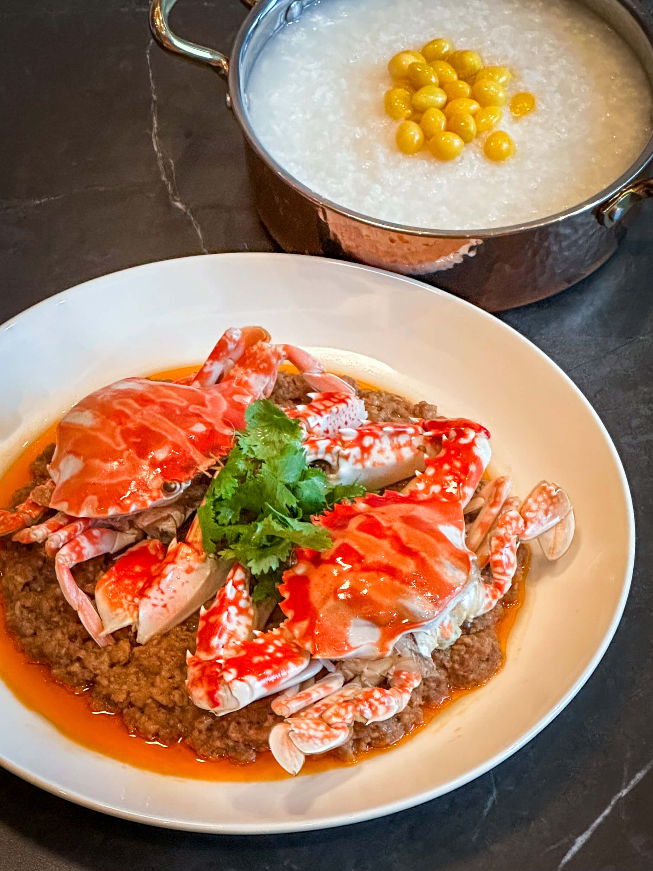 另一道林欣怡總經理特別推薦的「萬里花蟹蒸肉餅(附明火廣東粥)」,選用當地進港的新鮮花蟹,尤其是在這個秋天的季節最適合品蟹,與家常蒸肉餅結合,海陸的凝縮旨味在口中綻放。「玉樹芙蓉龍虎斑」將魚菲力片下後捲入蔬菜,優雅而精緻,每一道菜品都隱藏著傳統風味的講究,絕不容錯過。