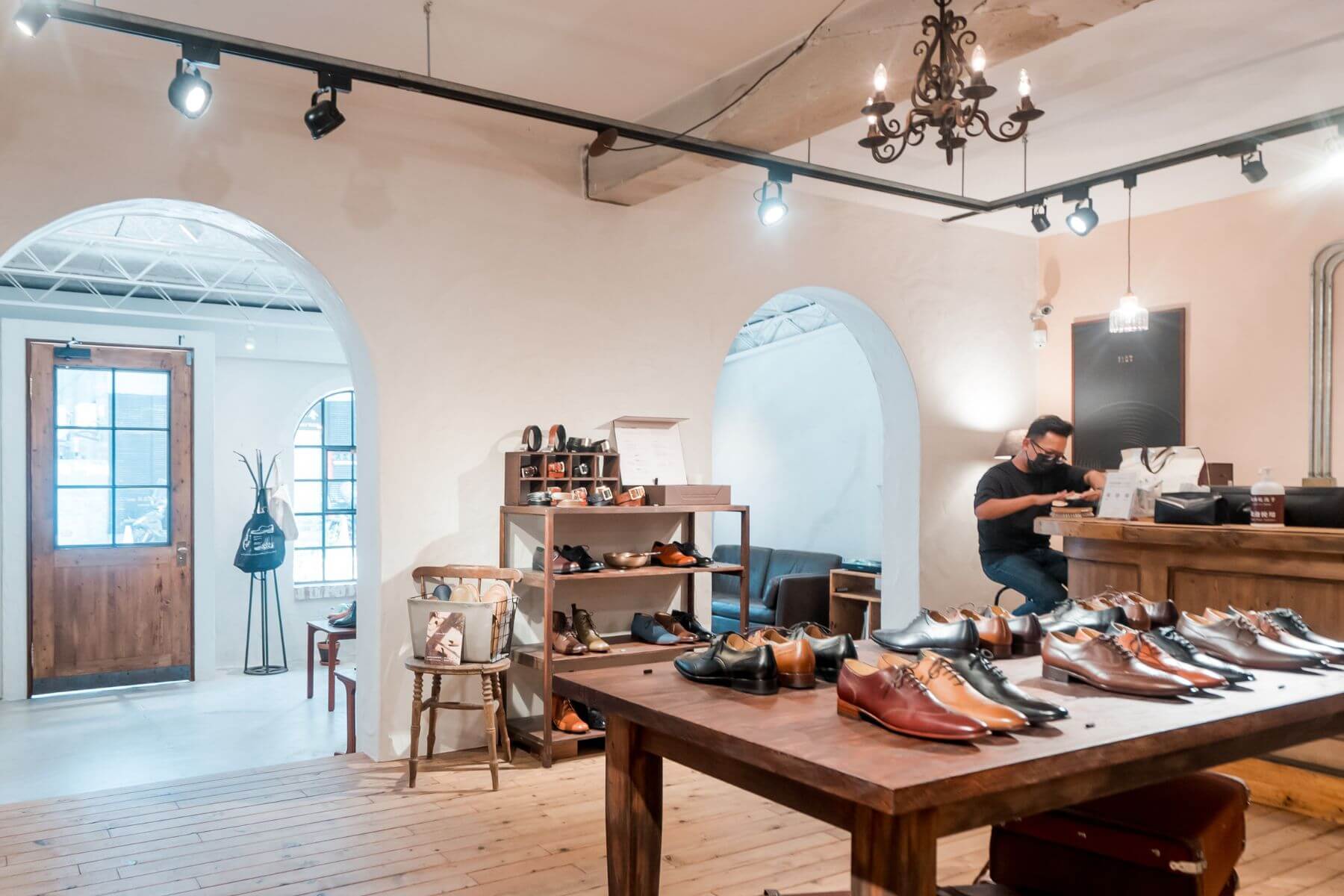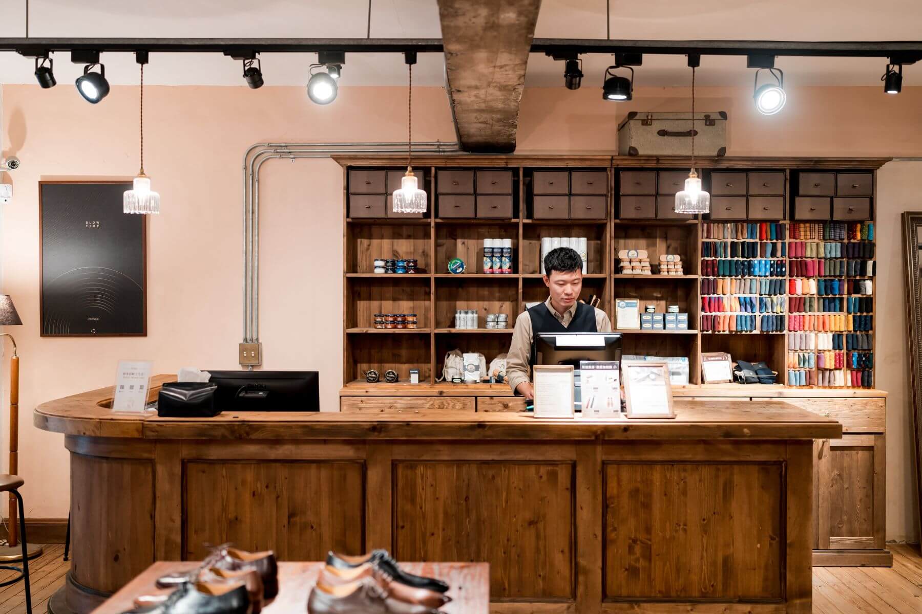 推開略顯歷史感、沉甸甸的木門,走進林果良品位於台北金華街的門市,宛如回到還沒有大量生產、複製技術的工藝時代,一雙雙由師傅在台灣手工製作的皮鞋,在微暗燈光下散發優雅氣息,映照著遠處色彩斑斕的紳士襪。看似充滿城市時尚感,但這裡處處都充滿彰化魂,更攸關彰化傳統產業的未來。