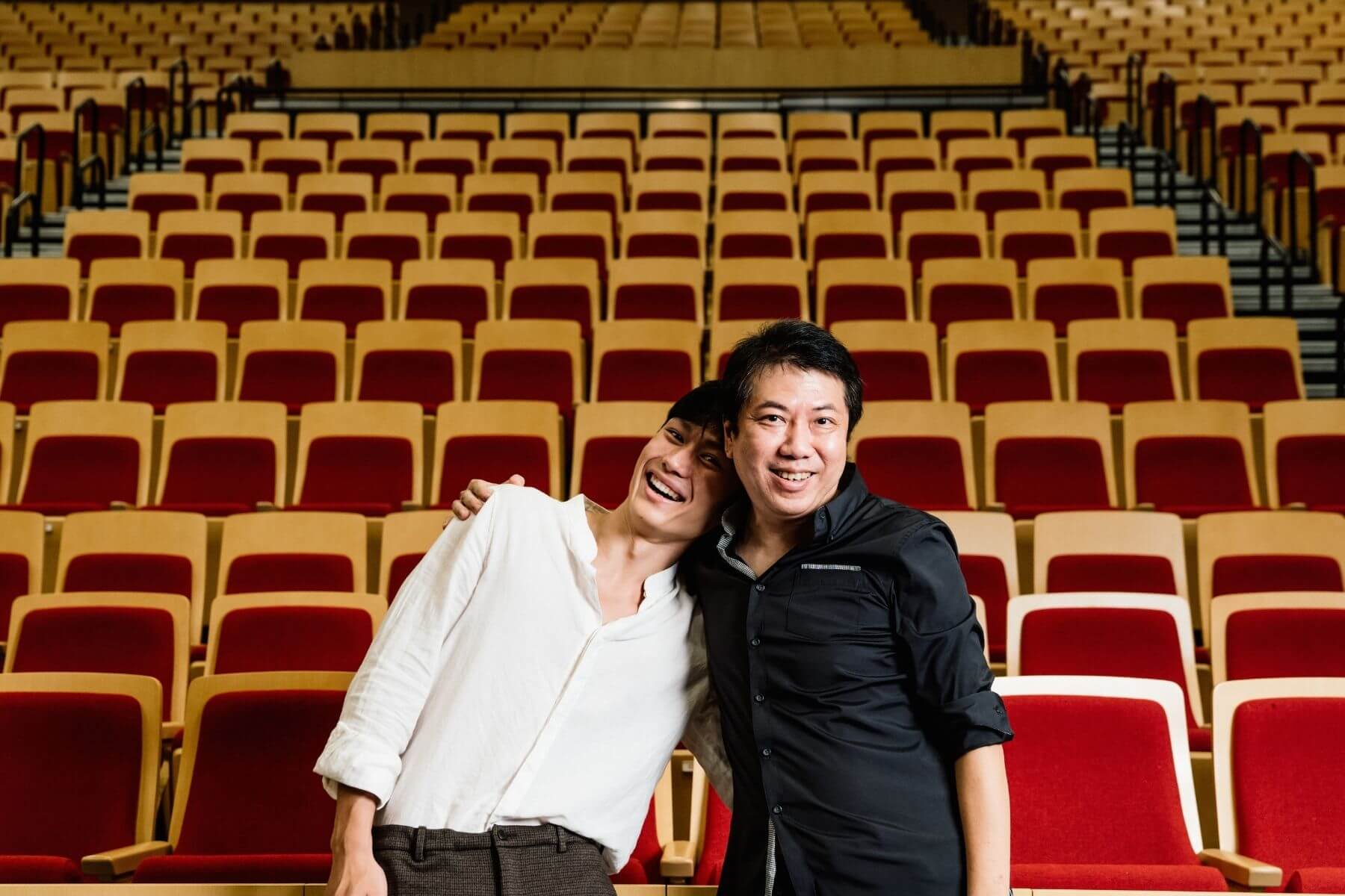 興傳奇青年劇場導演朱柏澄(左)、策展人耿一偉攝於桃園展演中心。