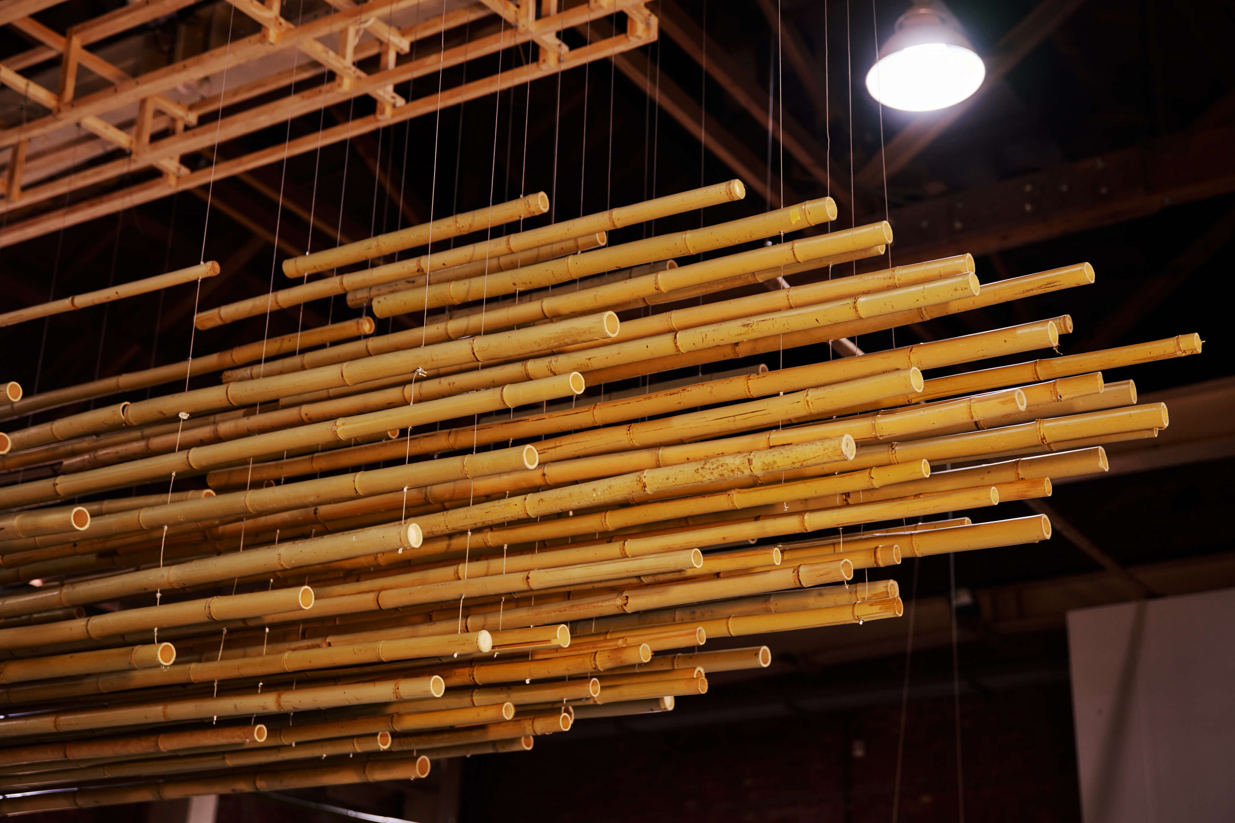 展覽的第一個視覺焦點是由「叛逆系建築師」陳冠華老師與元智大學大武山工作隊,共同設計製作的入口意象裝置——《如梭》。