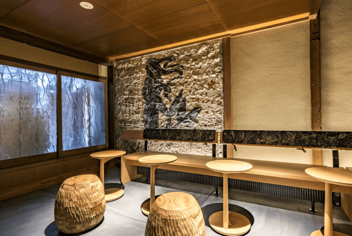 此外,這也是全球第一間可以坐在「榻榻米」上喝咖啡的星巴克,店內特別設有三處榻榻米座位空間。牆上掛軸藝術靈感來自清水寺音羽瀑布的水流,與沖煮咖啡時水紋流動的意象相互呼應,勾勒出靜謐典雅的品飲角落。