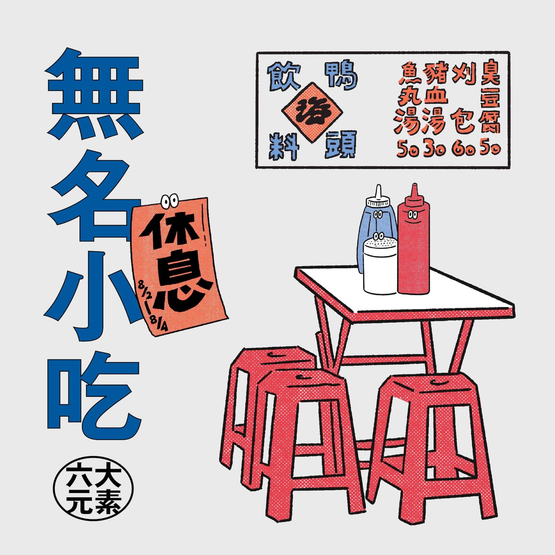 宋政傑說,接到要為「無名小吃」繪製字形的任務時,最煩惱的是怎麼讓四個字量感平衡又易讀,畢竟幾個字的筆畫有強烈的落差。最後選擇讓四個字變成四隻牽手的小人,一個牽一個漫步街道,除了刻畫最日常的生活景象,也悄悄埋藏了「完形心理學」的巧思:因為有較易讀的「名小吃」三個字緊緊相連、作為暗示,筆畫被簡化後較抽象的「無」字也可連帶被辨識,「但直到畫完才驚覺有點像在致敬披頭四?」(笑)。