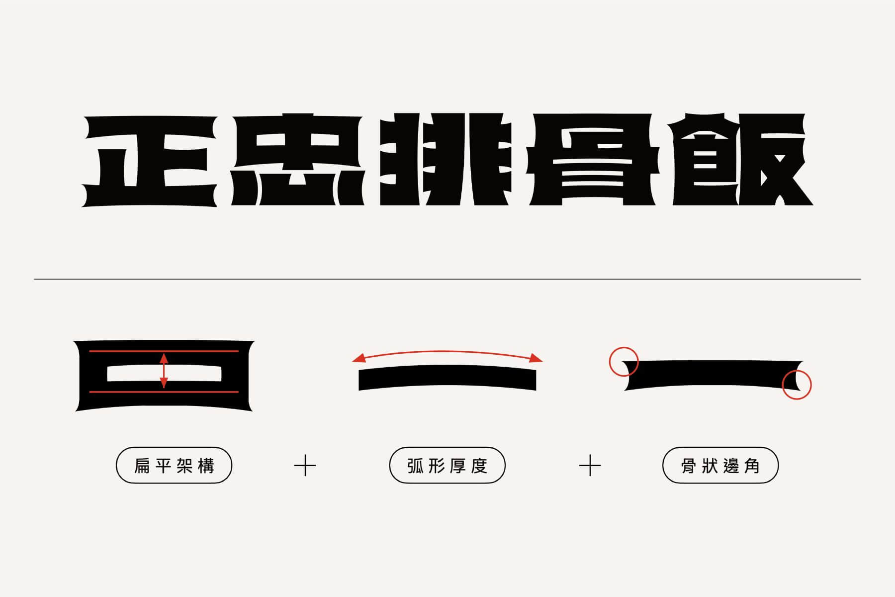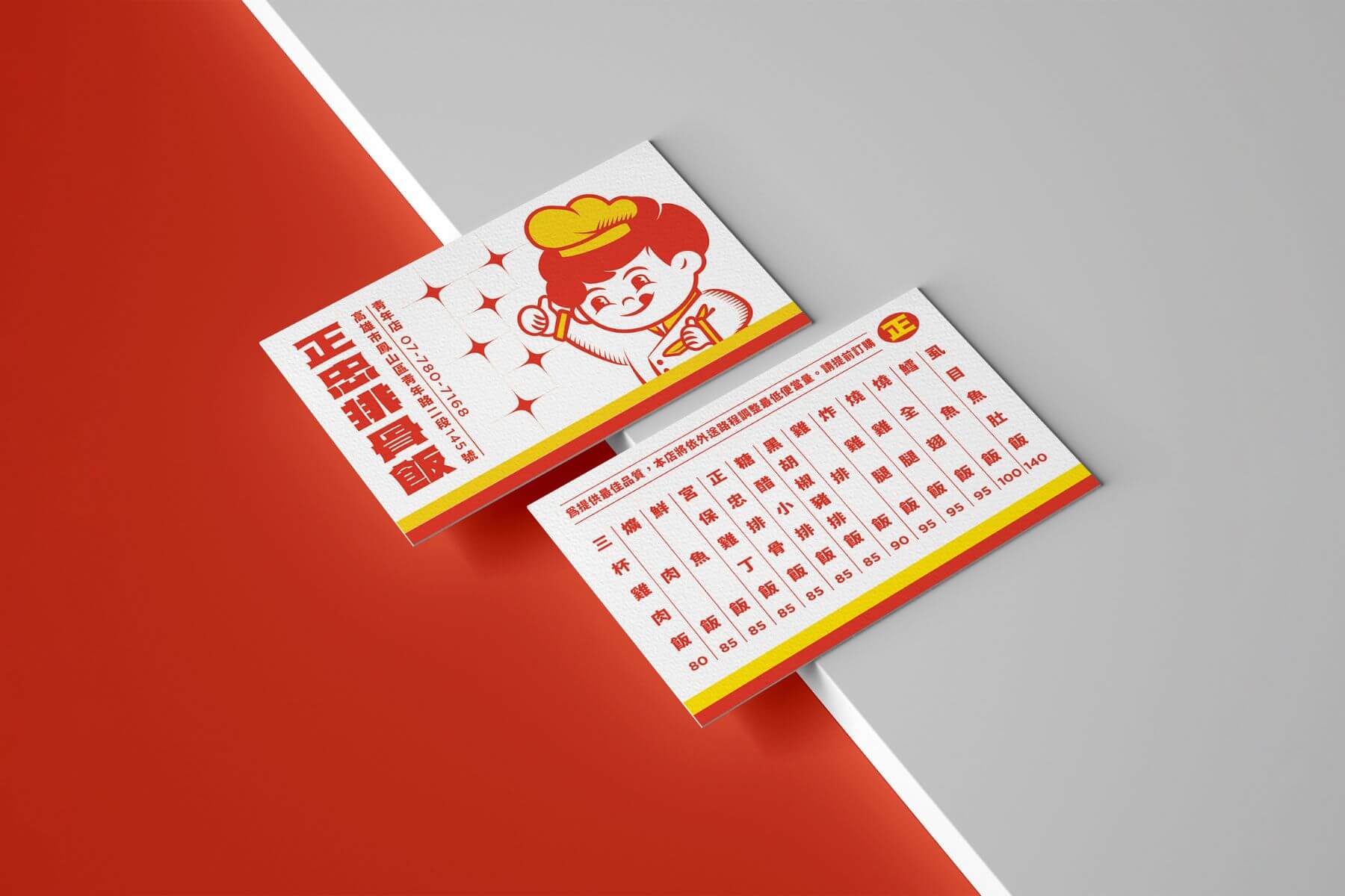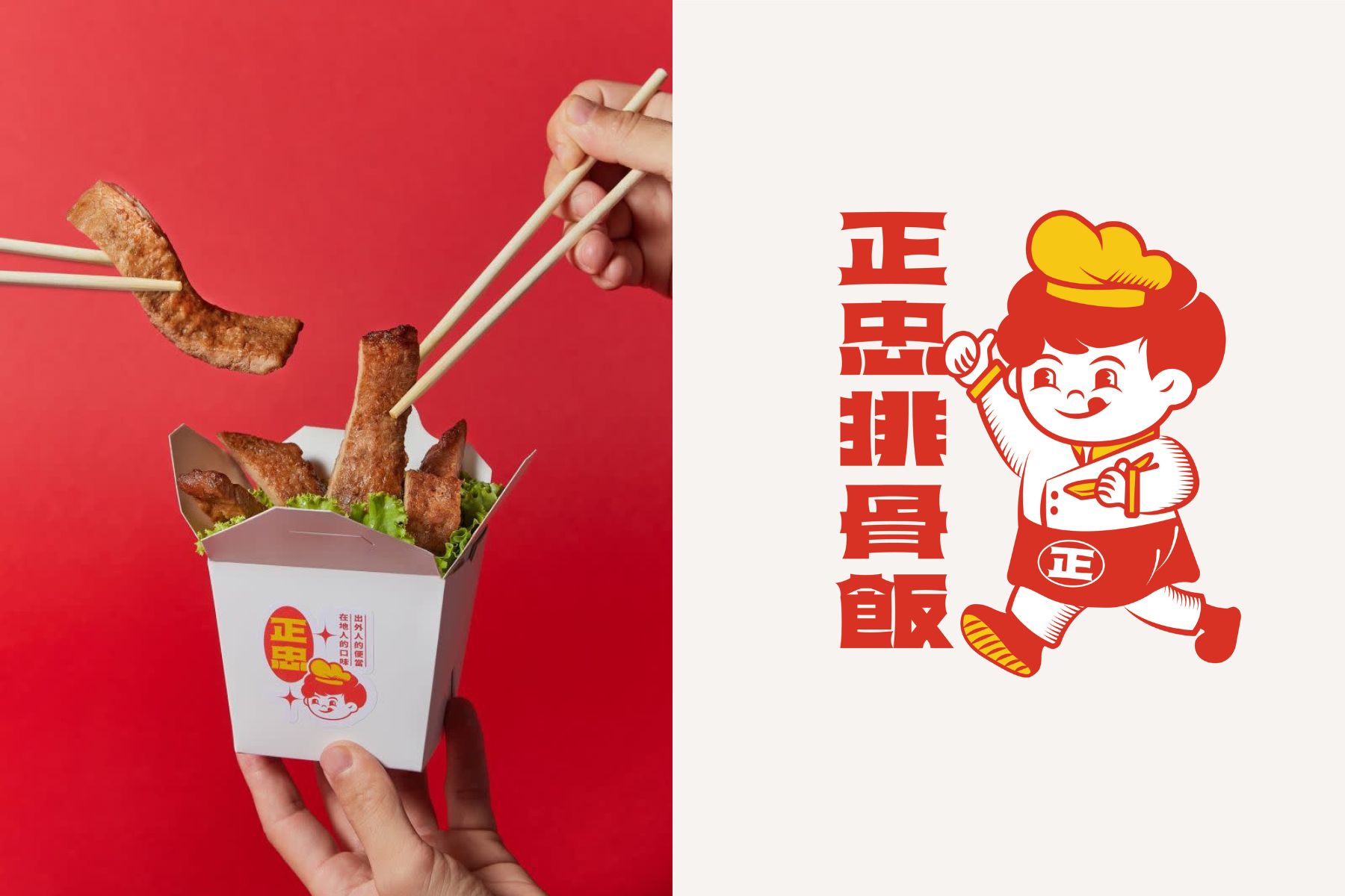 無氏製作吳孝儒認為明亮鮮明的紅黃符號是正忠排骨飯的固有特色,便以此為基底發想設計與延伸。