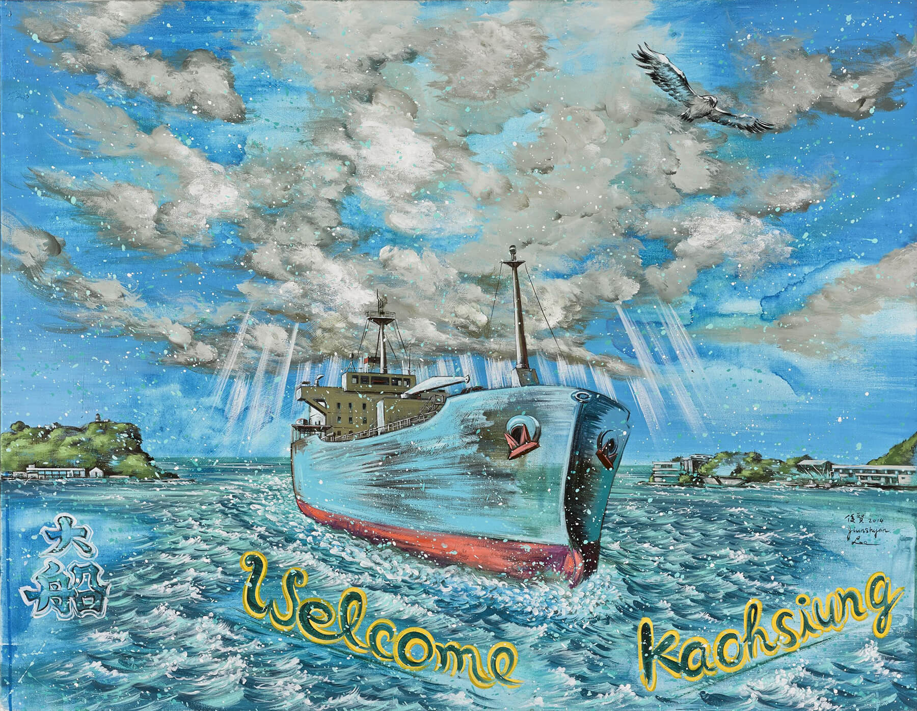 李俊賢,《大船入港之哈瑪星版》,2014,壓克力顏料、畫布,90.5×116.8 cm。(圖/藝術家家屬收藏)