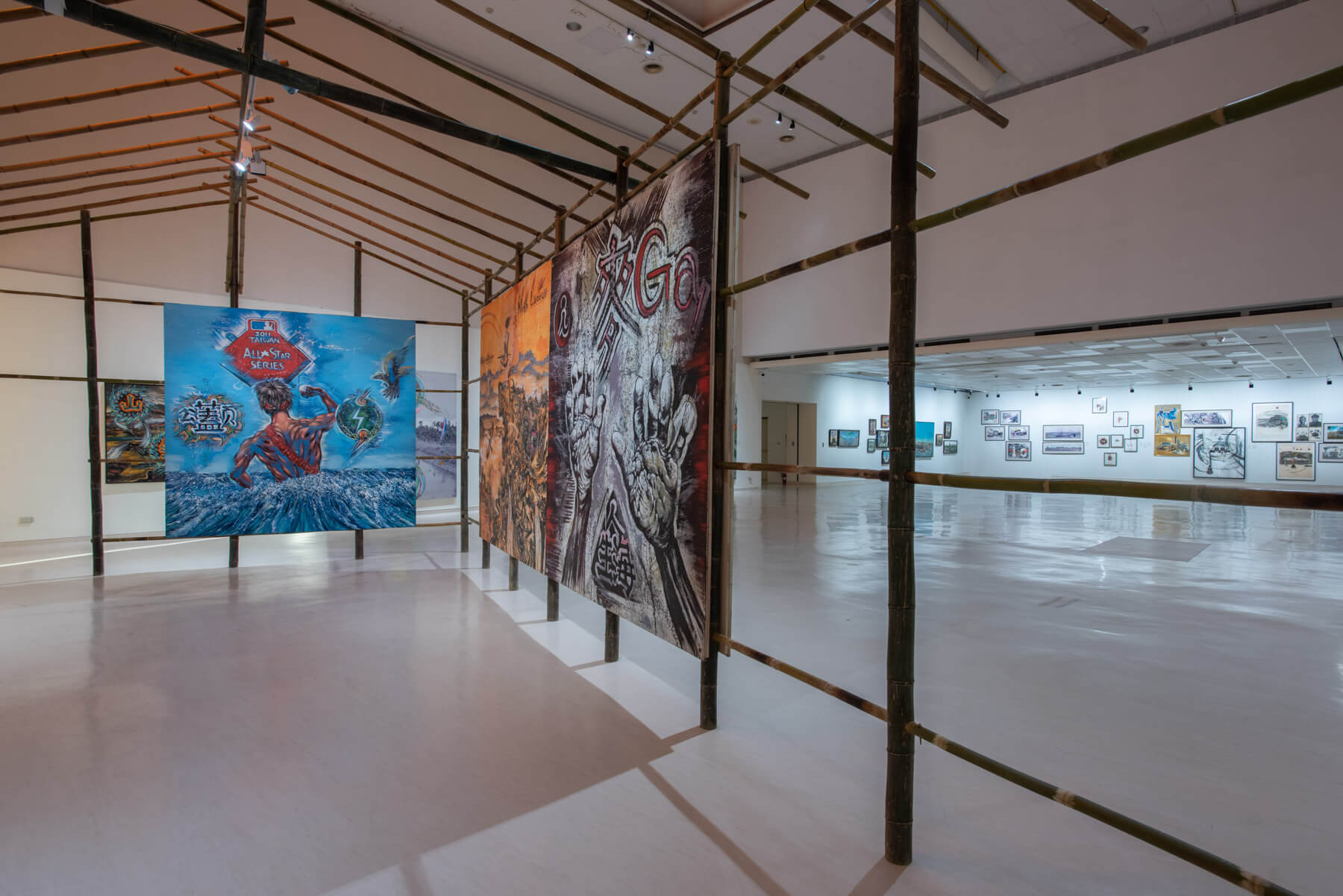 1989年從紐約回台的那一年,他開始想像要怎麼在創作裡表現台灣文化, 他那行那看,想到從自己記憶、生長經驗與周遭環境畫起,當兵的記憶、學校的空間與高雄充滿碉堡的環境成為內容。1989他回國前的這一年,震撼視覺的文字符號走入了他的畫面。