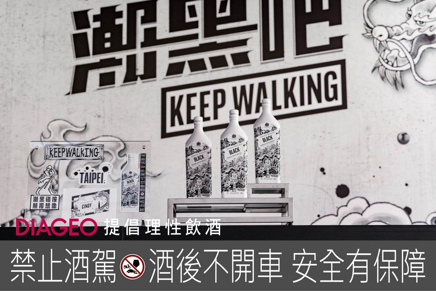 台北限定瓶的創作交由曾經獲得全美獨立音樂獎最佳專輯包裝設計殊榮的BlackZao操刀。延續先前公佈的Johnnie Walker黑牌AIR-INK™全球限定台北瓶設計,「Johnnie Walker AIR-INK™ 全球限定台北瓶錯視裝置藝術」將平面作品以立體視覺錯位的方式重新演繹,從正面的Johnnie Walker黑牌AIR-INK™全球限定台北瓶瓶身向左側移動,彷彿可見原先平面的各式意象元素躍動於多層次的水平線。