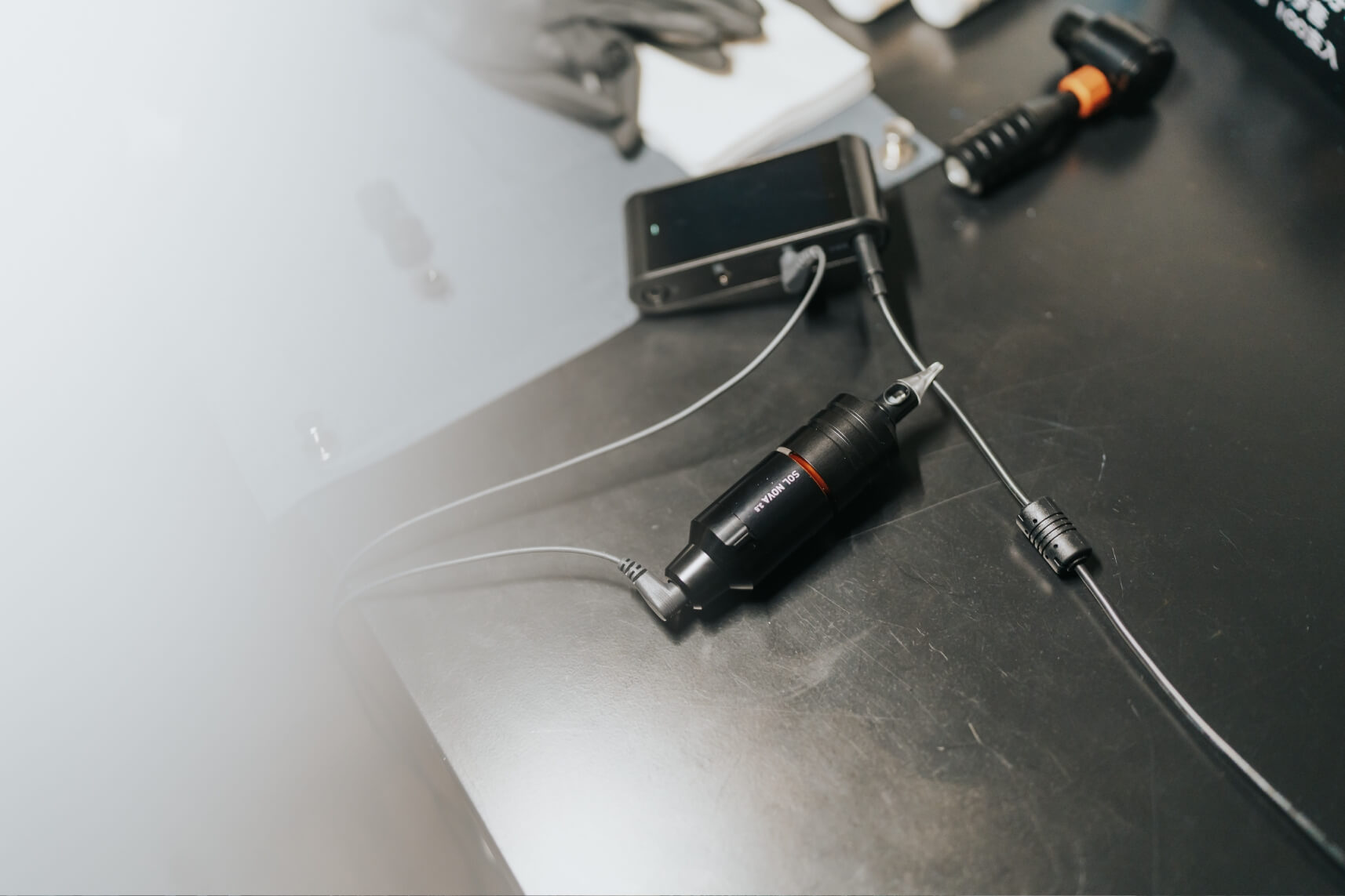 ❷ 刺青機|刺青機等於是他們在皮膚上作畫的畫筆。身為德國刺青機器品牌夏安(Cheyenne)的亞洲官方合作藝人,擁有一台夏安SOL Nova刺青機是再自然不過的事——對刺青師來說。
