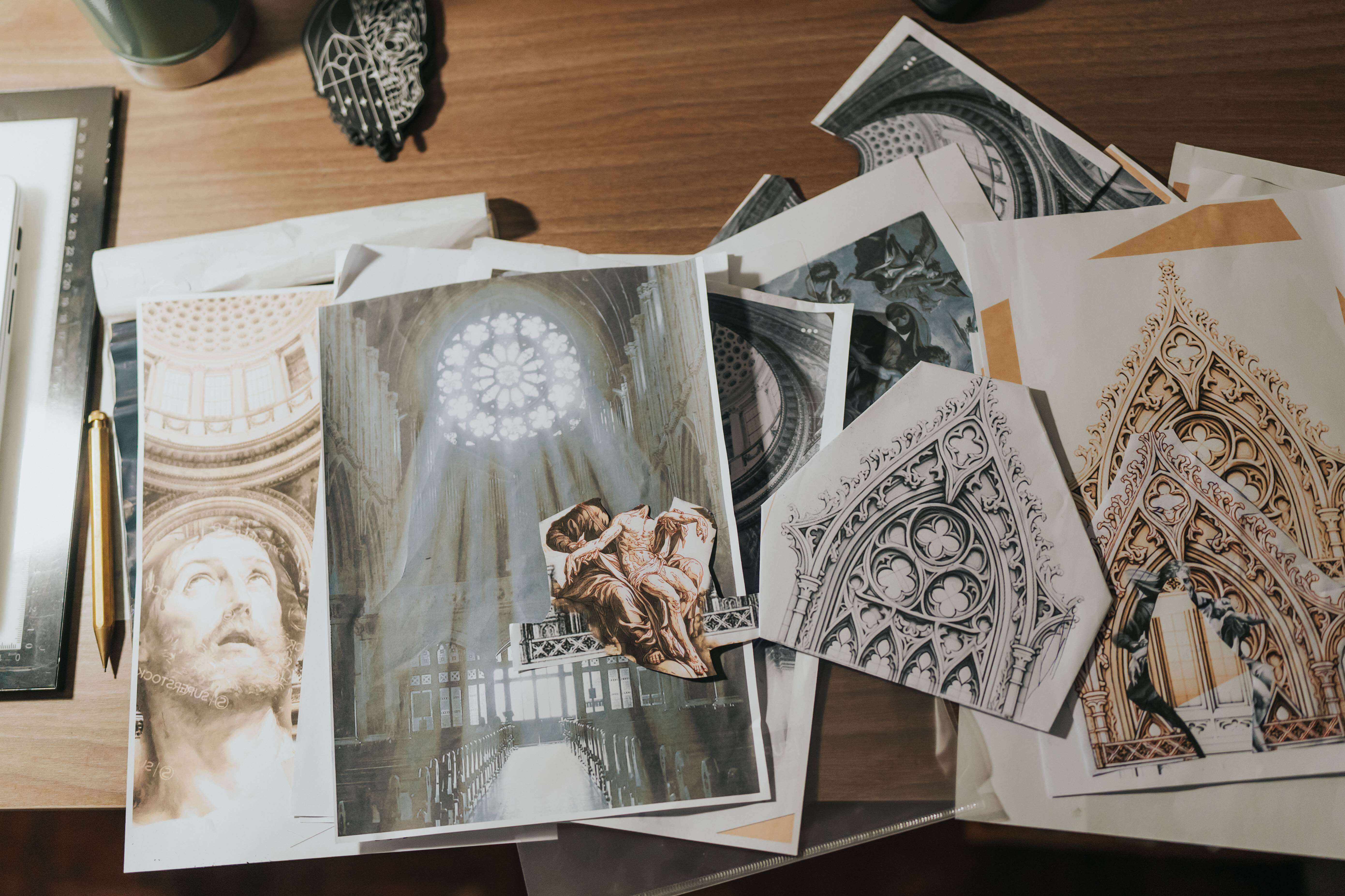 ❶ 設計圖|Josh擅長描繪耶穌、聖母像、十字架,以及各種歐式建築。最初就是因宗教主題的刺青,而在倫敦刺青大會獲得關注,並受到名人喜愛。