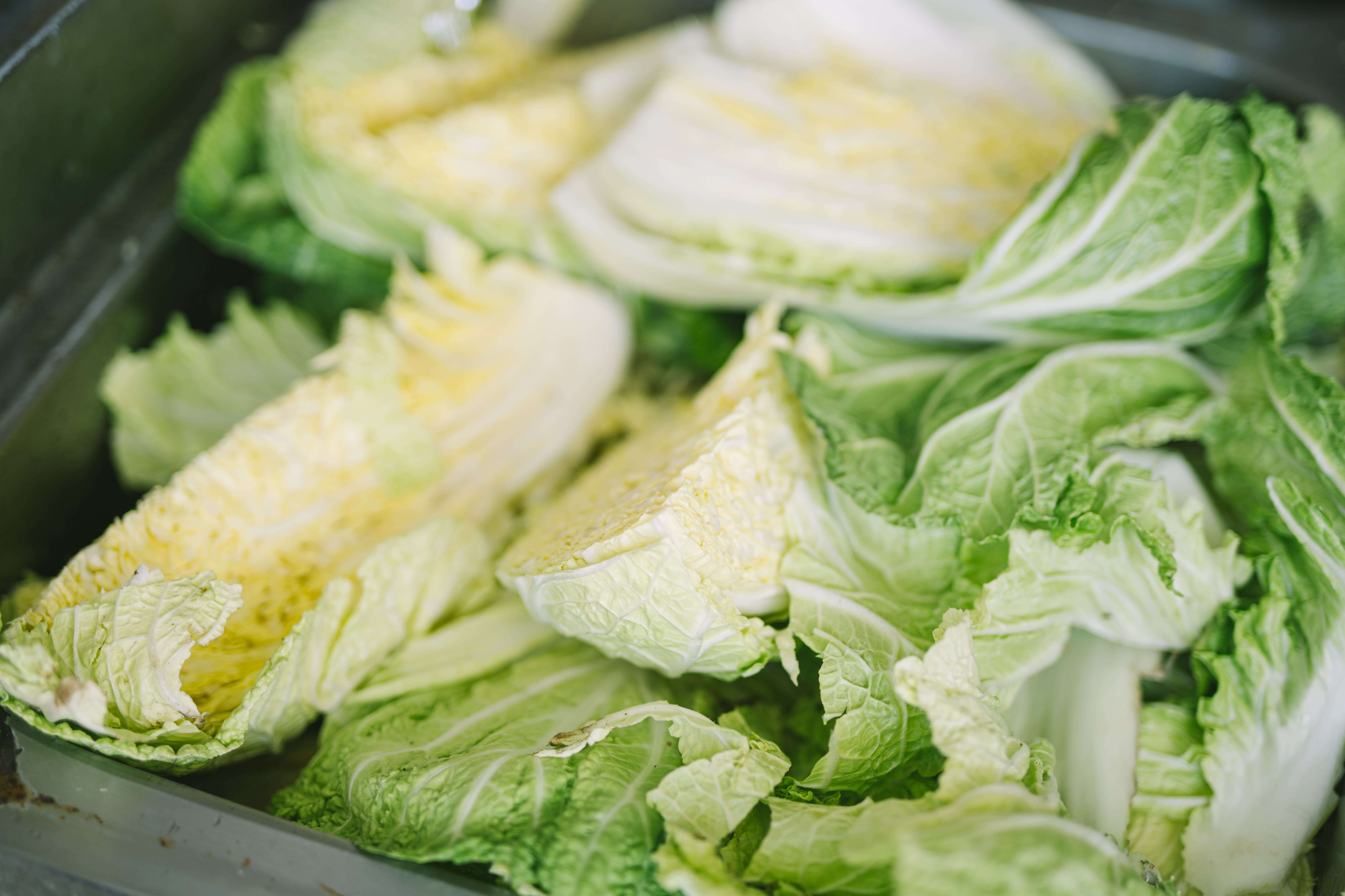 於是,王鴻庚自行研發「老滷汁」取代鹽巴——用大白菜發酵後的酸菌,再泡回新鮮的大白菜缸裡,用大白菜發酵大白菜,一週時間便可完成。原料也從台灣白菜換到韓國白菜,工序從「先醃再切」到「先切再醃」,經歷十一次不同作法的嘗試,才發酵出理想的酸白菜:「淡淡的一股酸香味,吃完會回味。」不用醋去加速製程,而是呈現白菜原有的滋味。
