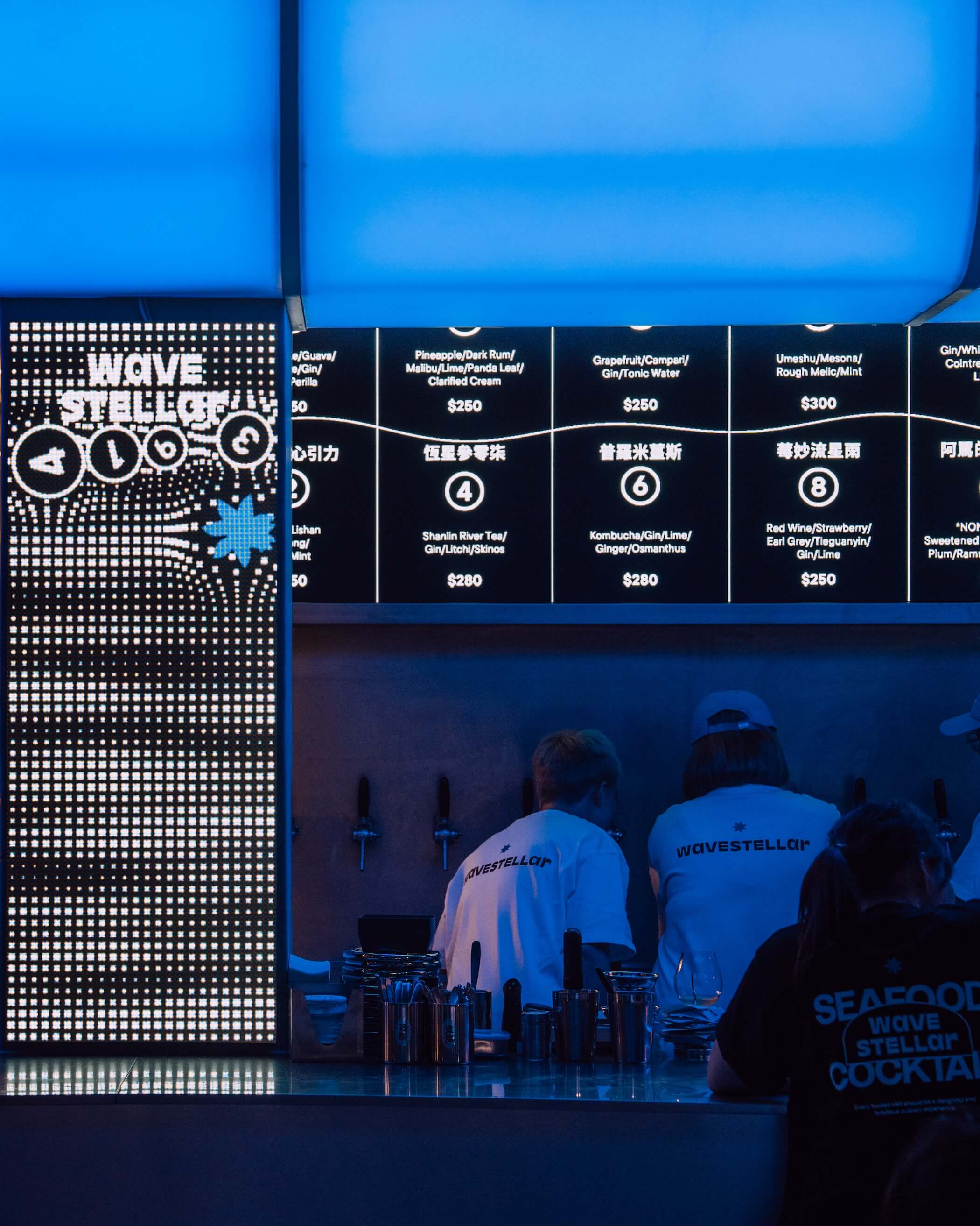 在高雄大港倉7庫,「浪際」正以其獨特的姿態,重新定義港都的夜生活文化,打造融合台式風味、當代設計與音樂體驗的全方位感官旅程。永心鳳茶創辦人薛舜迪在2023年11月先行開設了「永心浮島」餐酒品牌,發現高雄缺少亞洲正流行的汲飲式(Draft System)飲酒場所,於是在浮島旁加開了「浪際」酒吧,色系是一片自由海藍、混調向高雄鋼鐵業致敬的金屬銀,空間充滿質感,前衛而不失溫度。