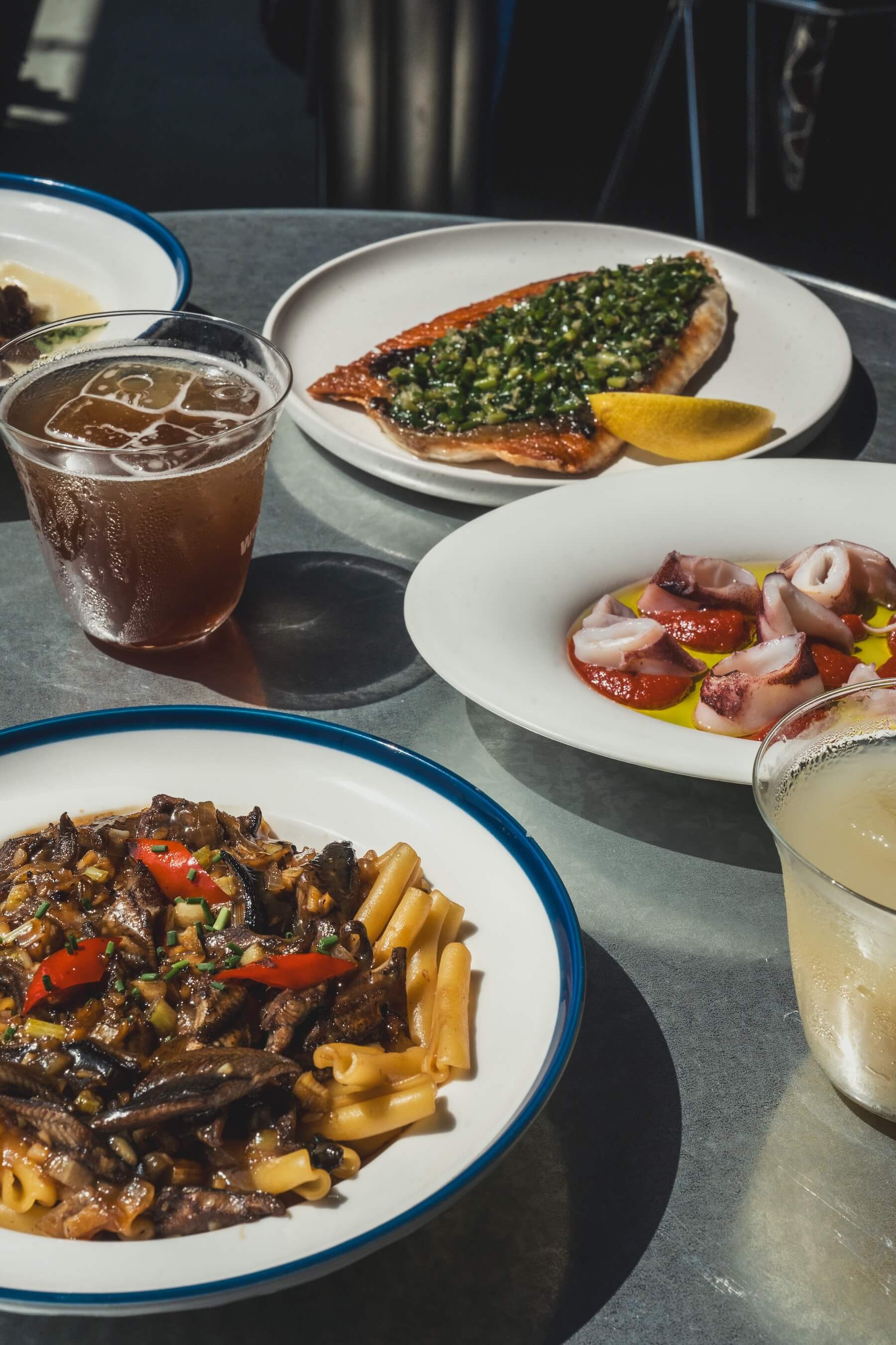 浪際餐點以高雄在地海鮮為主,融合台式小吃與創新料理手法,顛覆人們對bar food的想像,烹調相當講究,命名愛玩諧音梗,這道「蔥上開花思暮魚」淋上鹽蔥醬與韭菜花,讓香嫩微脆的虱目魚更開胃,更能多喝幾杯。