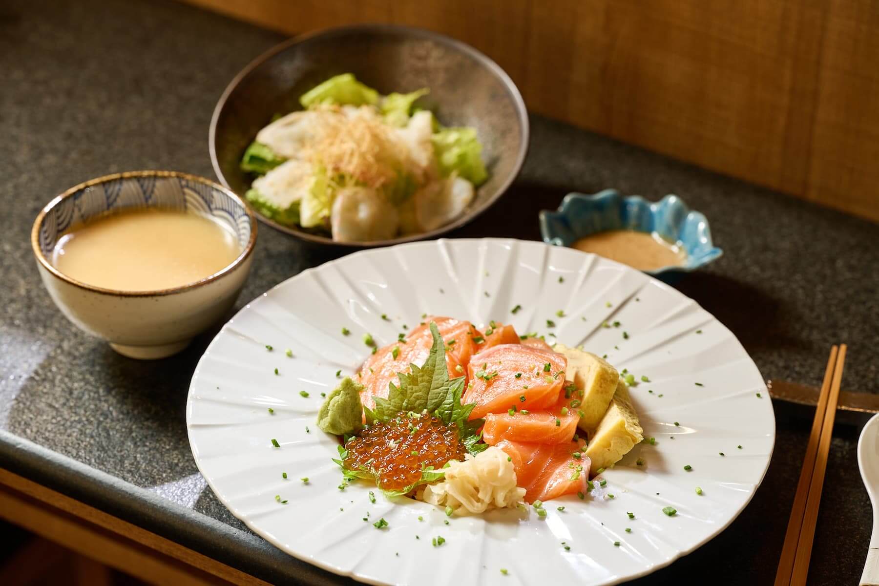 除了既有套餐與品項外,店內也提供每人費用3000元起的客製化服務,其中限定預定八席包廂或十席包廂才有機會品嘗的石狩鍋料理,更是主理人的最愛:以當日現採蔬果,配上當期現殺大型魚貨所特意保留的部位,在小火慢燉煮20分鐘後,成為一道甘甜順口的鍋物料理。