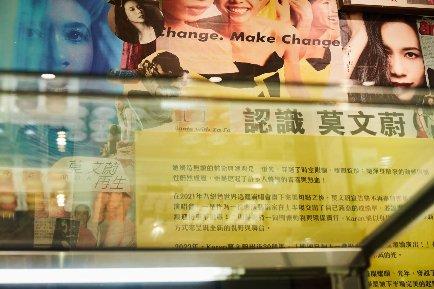 位於agnès b.信義誠品門市空間的特展現場,呈現多幅關於藝人的珍貴影像與視覺藝術,從莫文蔚三歲時的童年影像開始,到演唱會、唱片封面、雜誌照片等展出,包含導演王家衛御用劇照攝影師Wing Shya(夏永康)為莫文蔚拍攝的《文丞武蔚》絕版寫真集,當中四幅經典照片以AR技術重新呈現在觀眾眼前。