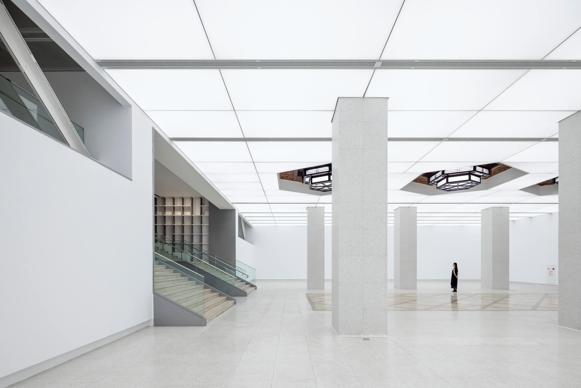 在保留建物的歷史記憶和創造當代流動性空間的設計前提下,梁豫漳的改造計畫適度留存了內部的宮燈和大理石拼花,並且加入新的建築材料如光膜天花、白色水磨石、金屬擴張網等,讓原本在視覺上顯得沉重的歷史元素,能在現代的材料詮釋中變得輕巧。