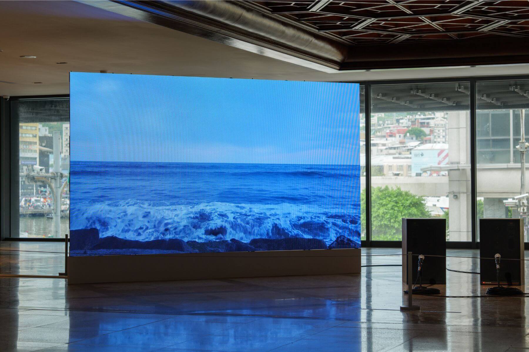代表今年威尼斯日本館的日本藝術家毛利悠子,則是擅長收集日常生活的各種零件,建造成自己自足的生態系統,看似不協調的機械裝置,其實是精心的安排,展出中的《Piano Solo - Ohara》,是她在疫情期間獨自住在琵琶湖山中小屋的創作,展場中麥克風收入預錄的自然聲響和現場環境音,透過自動演奏轉成即興鋼琴演奏曲,然而麥克風無法精準的截取,於是產生了失準和延遲,點出自然和人工之間的不協調,與窗戶外的基隆港景色,產生有趣的對比。