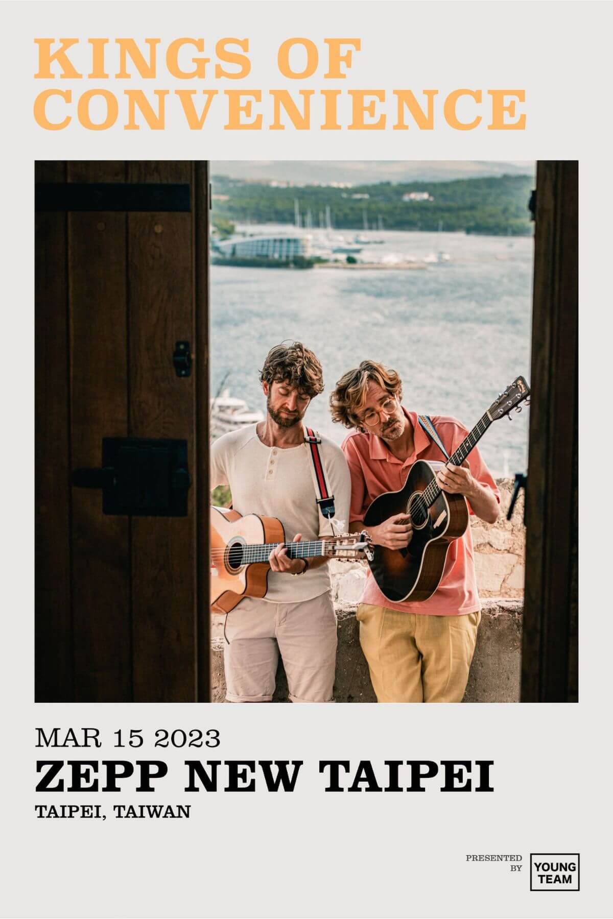 《Kings of Convenience Live in Taipei 2023》即將在明年 3/15(二)於Zepp New Taipei 登場,門票已於 11/29(二) 正式在博客來售票系統獨家販售。接下來 Young Team Productions 將預告2023年第二組來台的海外樂團,敬請樂迷期待!