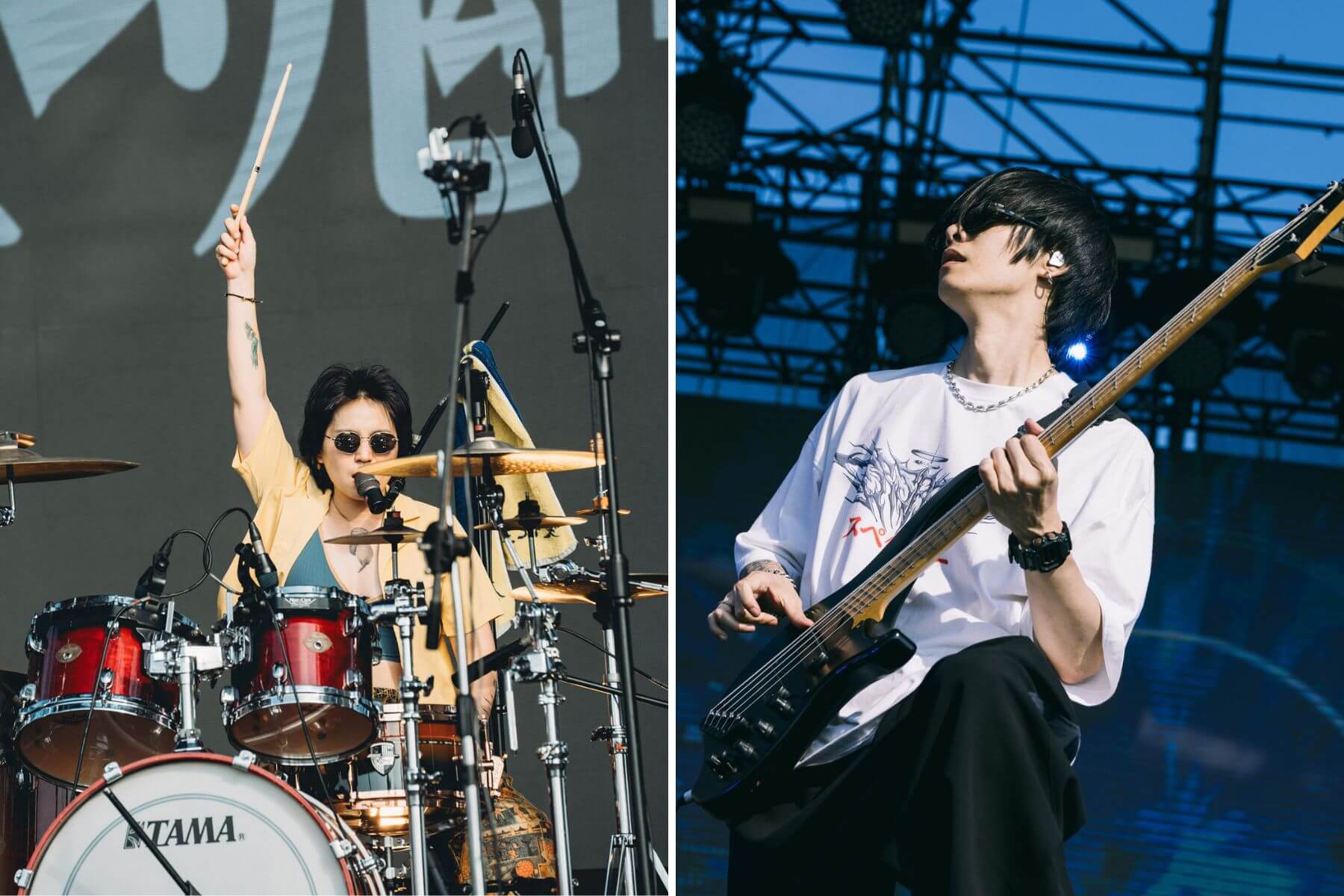 鼓手小米(圖左);貝斯手金毛(圖右)。(圖片提供/出日音樂)
