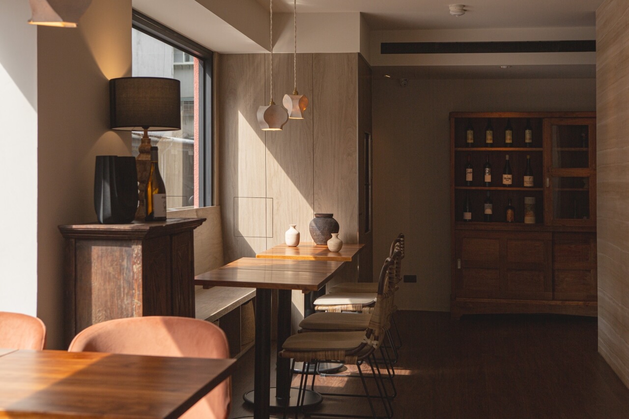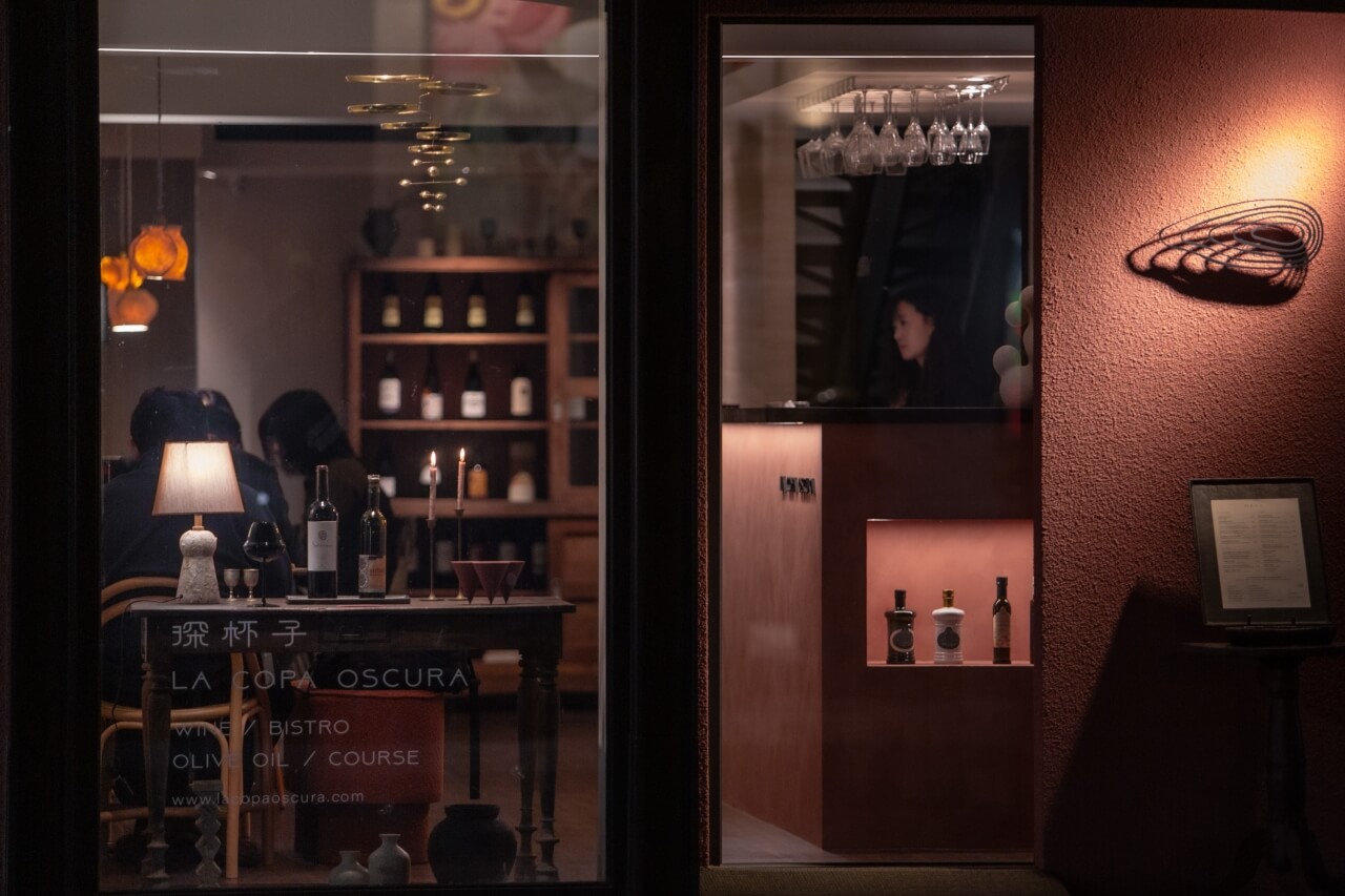 從內向外望去,是精緻的台北城市景觀;從外向內看來,則是一片來自南歐的風土世界。深杯子大安店彷彿一處與西班牙葡萄酒對話的當代空間,人們在裡頭安坐、品飲、駐足或遊走,都能邂逅不同藝術品。