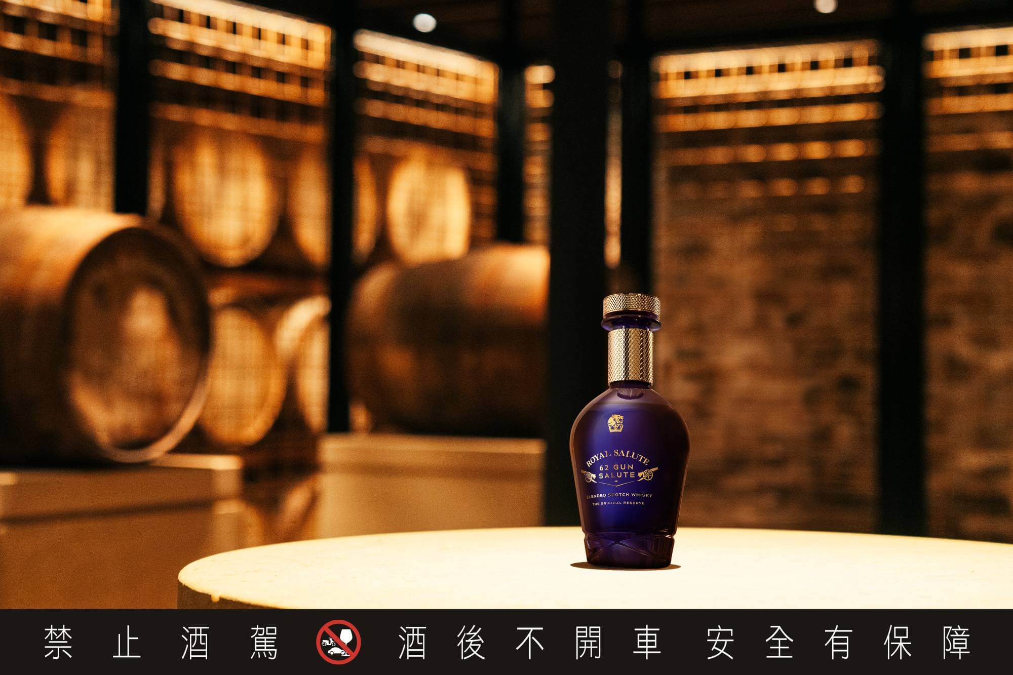 「皇家禮炮 62 禮讚-經典藍瓶」由首席調酒師Sandy Hyslop從高年份珍稀窖藏中奢選50種以上最頂級高年份的麥芽和穀物威士忌,更蘊含已消逝酒廠「神秘之井」Caperdonich的絕世酒液,帶來如62響禮砲儀式般磅礡且綿長的尾韻。