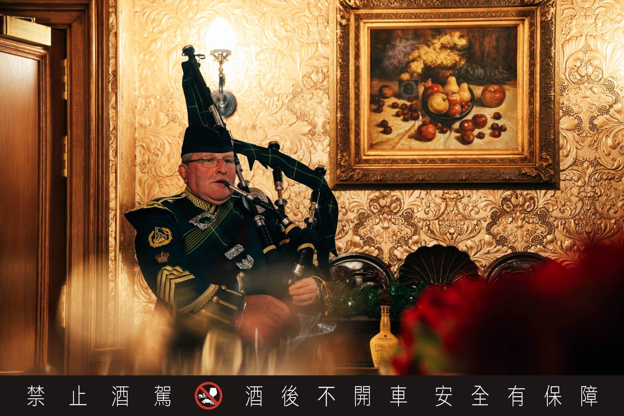晚餐由金黃酥脆的鱈魚揭開序幕,伴隨風笛聲,傳統的Haggis登場。主菜是Auchindoun莊園野鹿肉,搭配加州Zinfandel紅酒。飯後,品一杯皇家禮炮,細細感受時光在杯中流轉,透過「皇家禮炮無價頂奢私旅」體驗連英國上流社會也難以觸及的皇室奢華。