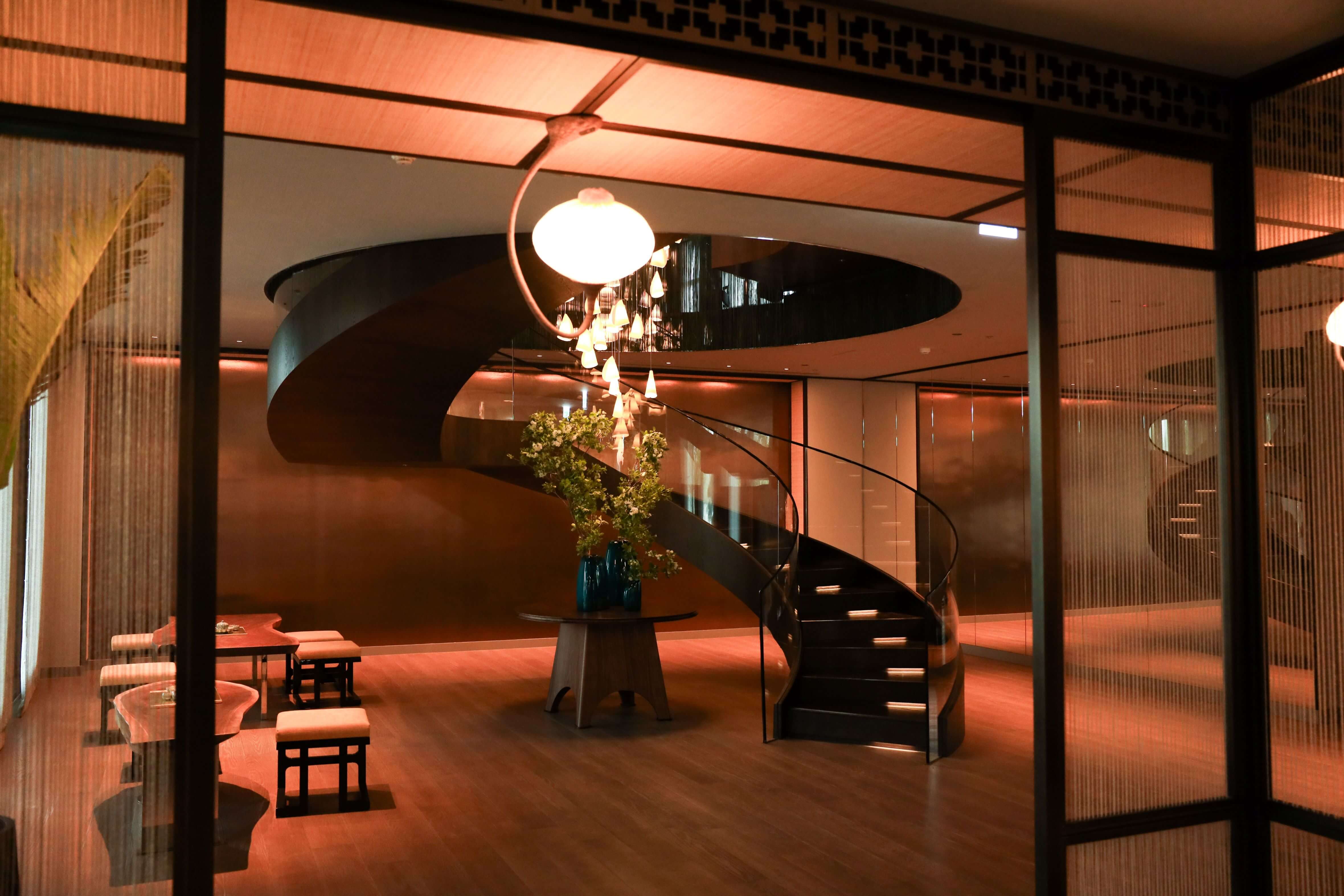 包廂內來自以色列的Aqua Creations手工吊燈帶來有機意趣。