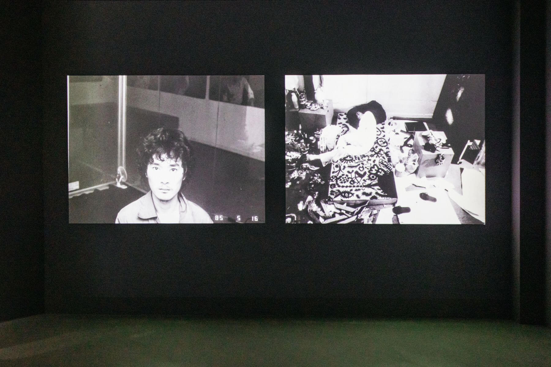 「狂八〇:跨領域靈光出現的時代」特展中放映的「林鉅純繪畫實驗閉關九十天」影像紀錄。(攝影/汪正翔)