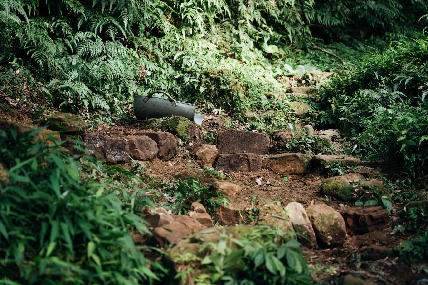 施作後的步道完全看不出人工形跡,覆有野草青苔的石塊錯落,彷彿原本就長在那裡。這就是手作步道的精神─讓自己成為自然的一部份,只有在系統下,才能準確地拿捏施作的「度」,最後要抹去自己在自然的痕跡,放下人類中心的觀點,這是一種與自然共生的哲學。