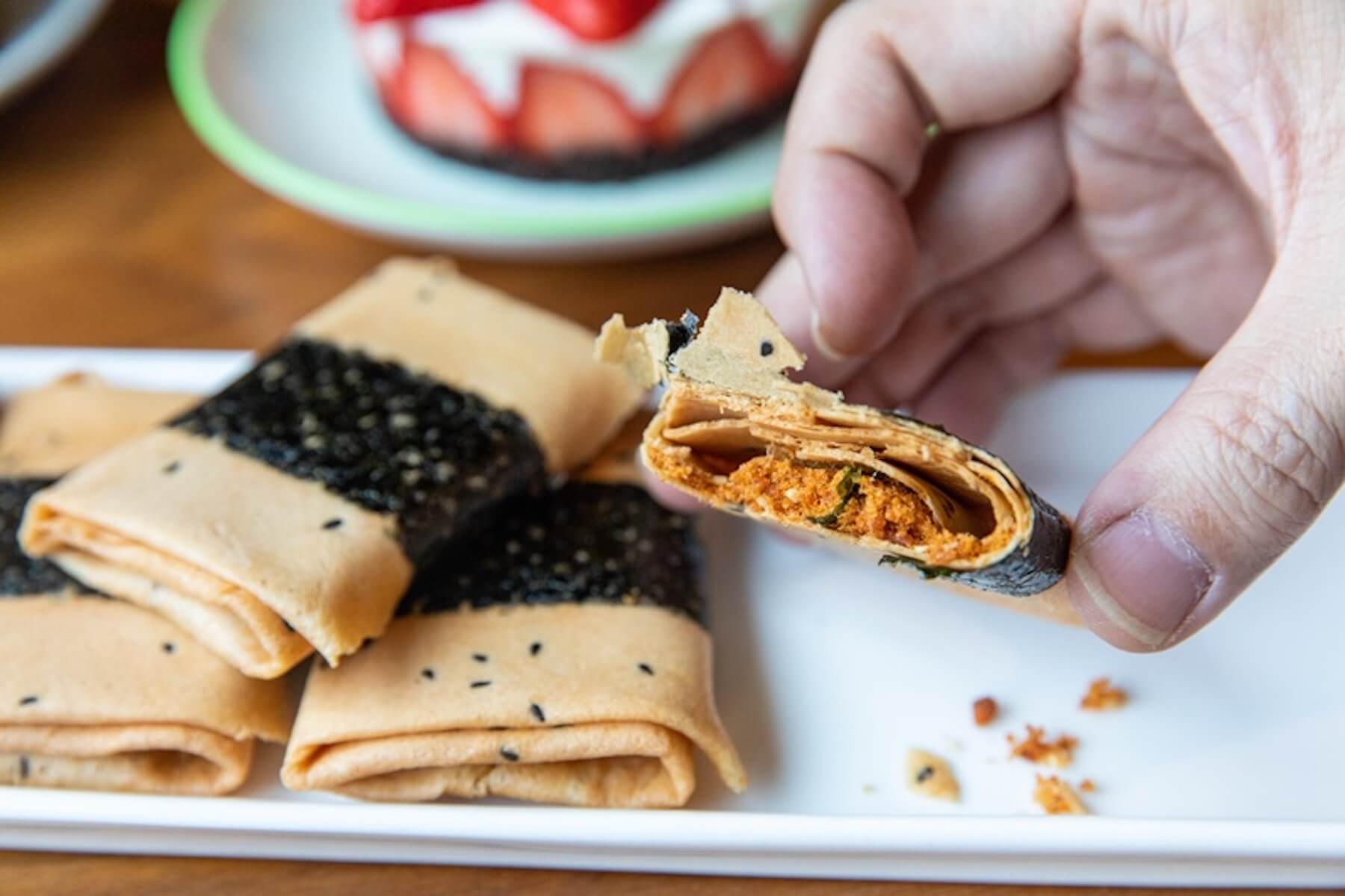 熊豆咖啡店以在地海產為素材推出的鮭魚鬆蛋捲。(圖片/基隆好物提供)