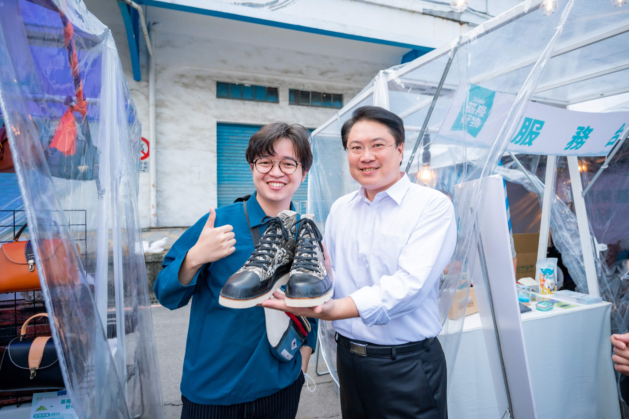 回歸基隆的手工鞋品牌「凡人與路」就是最典型的青年返鄉案例,圖為品牌創辦人暨設計師宋之凡與基隆市長林右昌合影。(圖片/基隆好物提供)