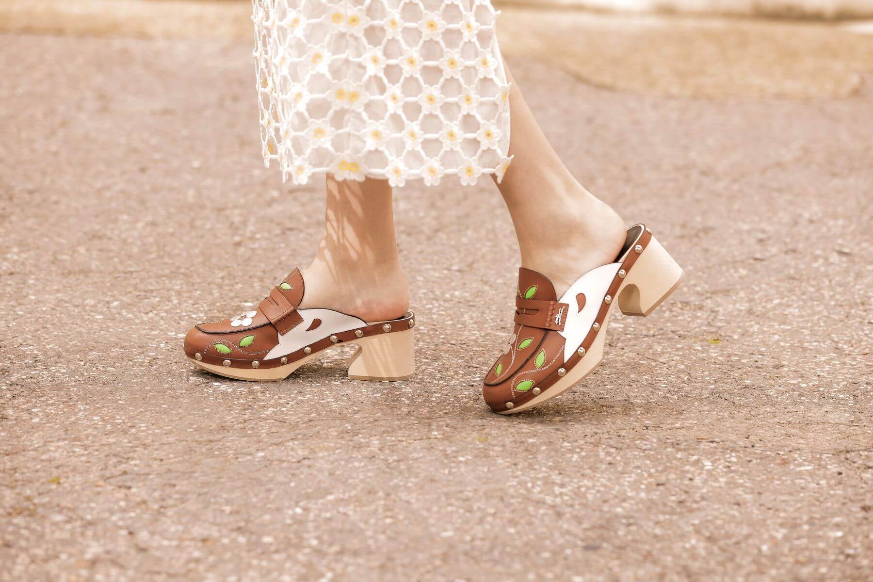 融合樂福鞋設計的方跟木屐鞋。