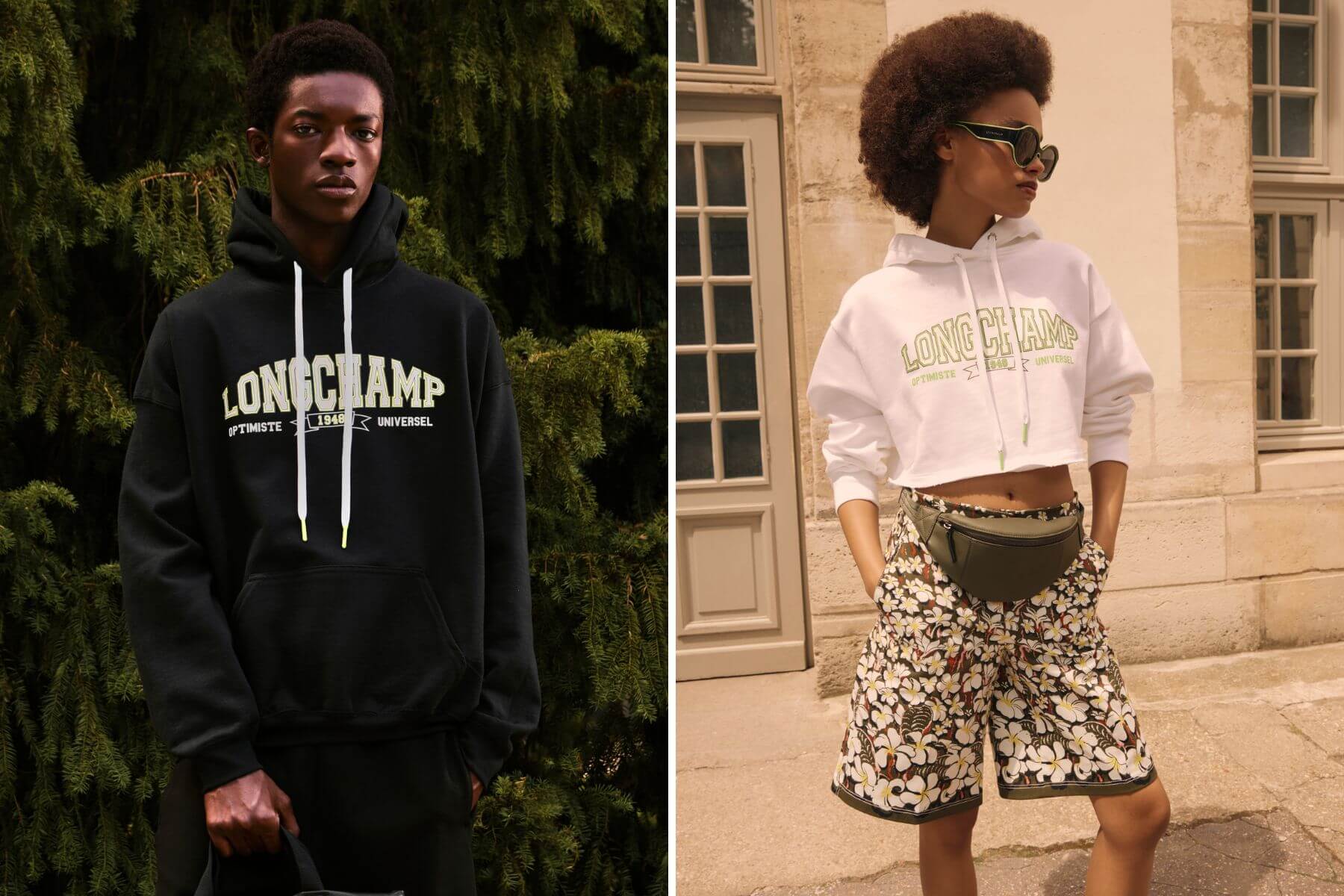 設計師以巴黎著名學區拉丁區(Quartier latin)和藝文勝地聖日耳曼德佩區(Saint-Germain-des-Prés)的背景建立人設,積極向上、講究生活品味的學生們穿著印有大學校徽的運動衫、T-shirt,隨身攜帶極具人文氣質的書卷感肩背包或素描本背袋,搭配實穿有型的棒球夾克或連身裙,傳遞自信又從容的舒適感;若是想要展現多點個人風格,也可選擇印有Longchamp招牌賽馬圖案的丹寧牛仔褲或夾克。